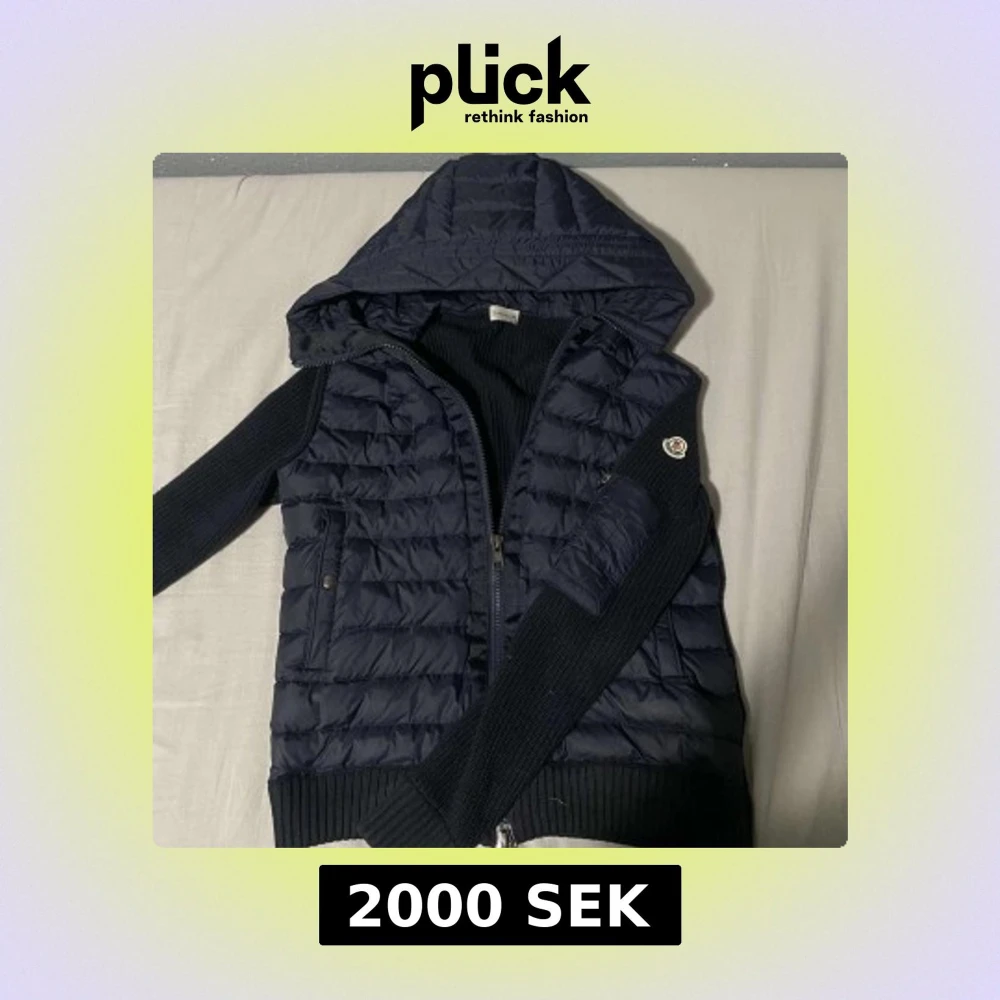 Säljer en mörkblå cardigan från Moncler med stickade ärmar. Jackan har dragkedja framtill, ribbade muddar och Moncler-logga på ärmen. Nfc skannen och allt övrigt är korrekt, det är bara att fråga ifall du funderar över något!