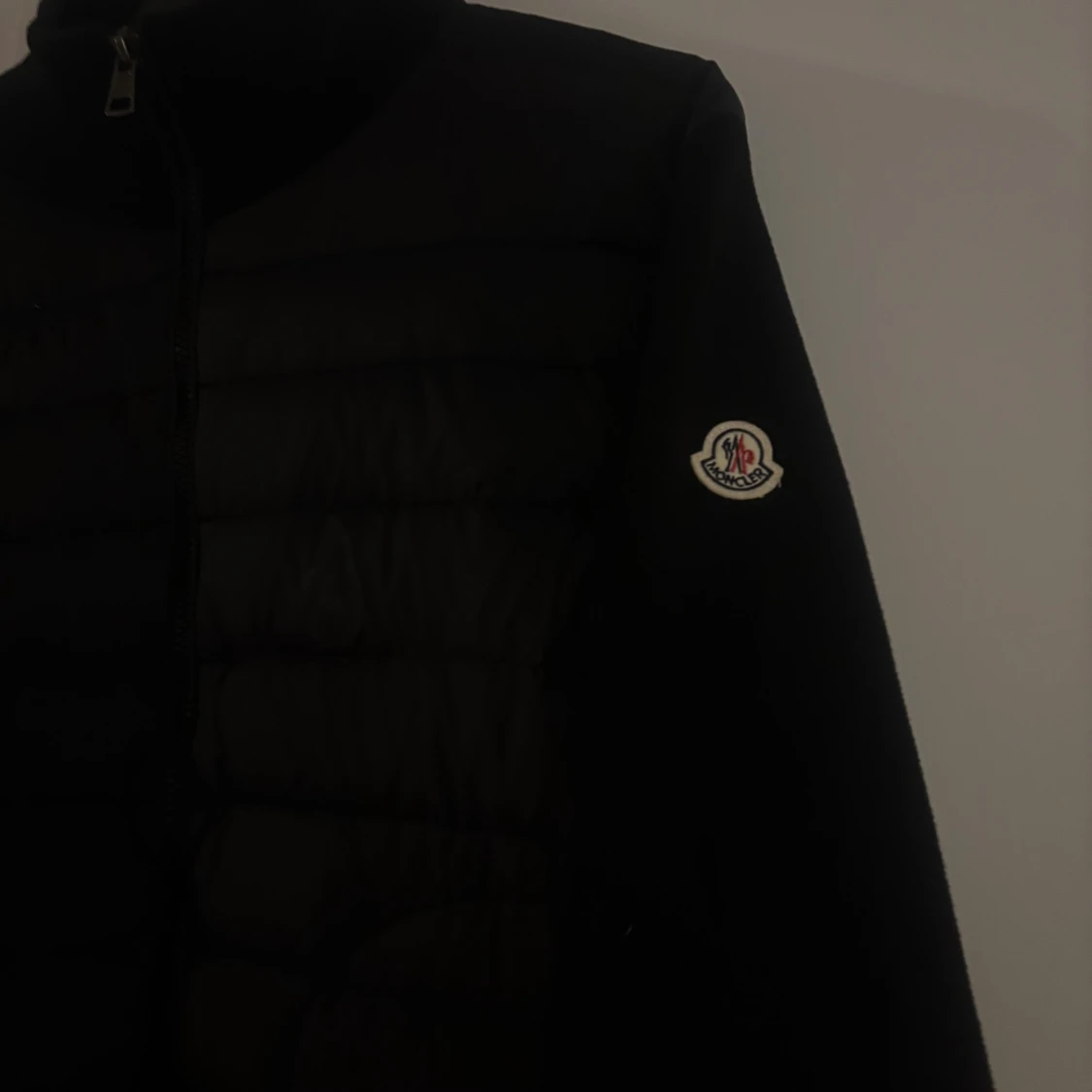 Svart hybrid cardigan från Moncler med quiltad front och klassisk logga på ärmen. Jackan har dragkedja framtill och är tillverkad i en mix av dun och polyester. Perfekt för dig som vill ha en stilren och varm jacka med exklusiv känsla. - kan gå ner i pris vid snabb affär - Finns i Göteborg - Kan även fraktas