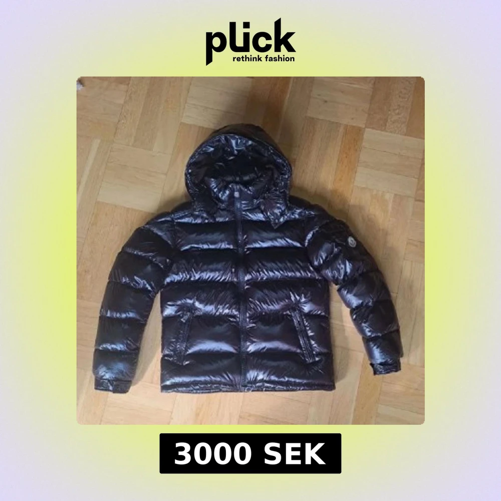 Säljer en svart pufferjacka från Moncler med glansig finish och huva. Jackan har dragkedja framtill, två sidofickor med dragkedja och Moncler-logga på ärmen. Insidan har ett coolt serietidningsmotiv. Perfekt för dig som vill ha en snygg och varm jacka.