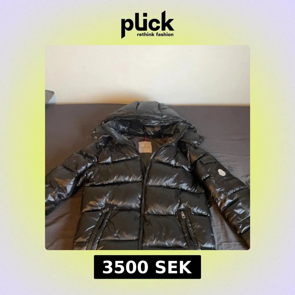 Säljer en snygg svart pufferjacka från Moncler. Jackan har en glansig finish och är utrustad med en huva och dragkedja. Perfekt för kyliga dagar när du vill hålla stilen. 🖤