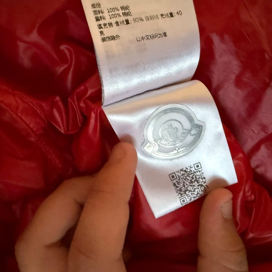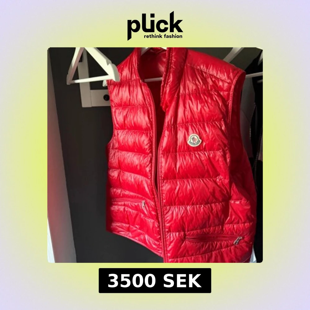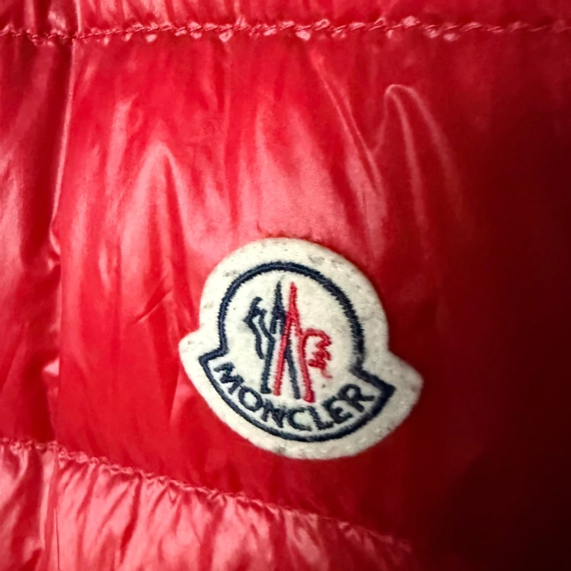 Snygg röd dunväst från Moncler med quiltad design och klassisk logotyp på bröstet. Västen har dragkedja framtill och två praktiska fickor med dragkedja. Perfekt att slänga över en hoodie för en cool look. Materialet är glansigt och lätt, vilket gör den enkel att bära. Allt fås med och prisförslag uppskattas!!