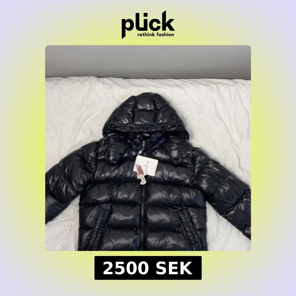 Säljer en svart, glansig dunjacka från Moncler med huva och dragkedja framtill. Jackan har quiltad design och två sidofickor med dragkedja. Fylld med vitt gåsdun för extra värme. Perfekt för kalla dagar och har en snygg, modern look.