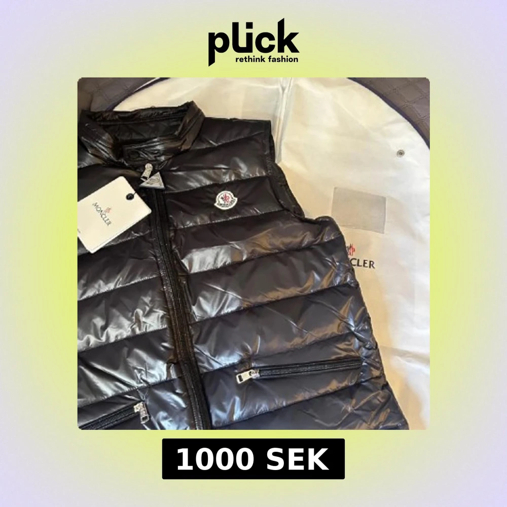 Snygg svart dunväst från Moncler med glansig finish och klassisk logga på bröstet. Västen har två dragkedjefickor framtill och hel dragkedja. Insidan har en cool serietidningsdetalj. Perfekt för lager-på-lager och streetstyle. Inga slitage