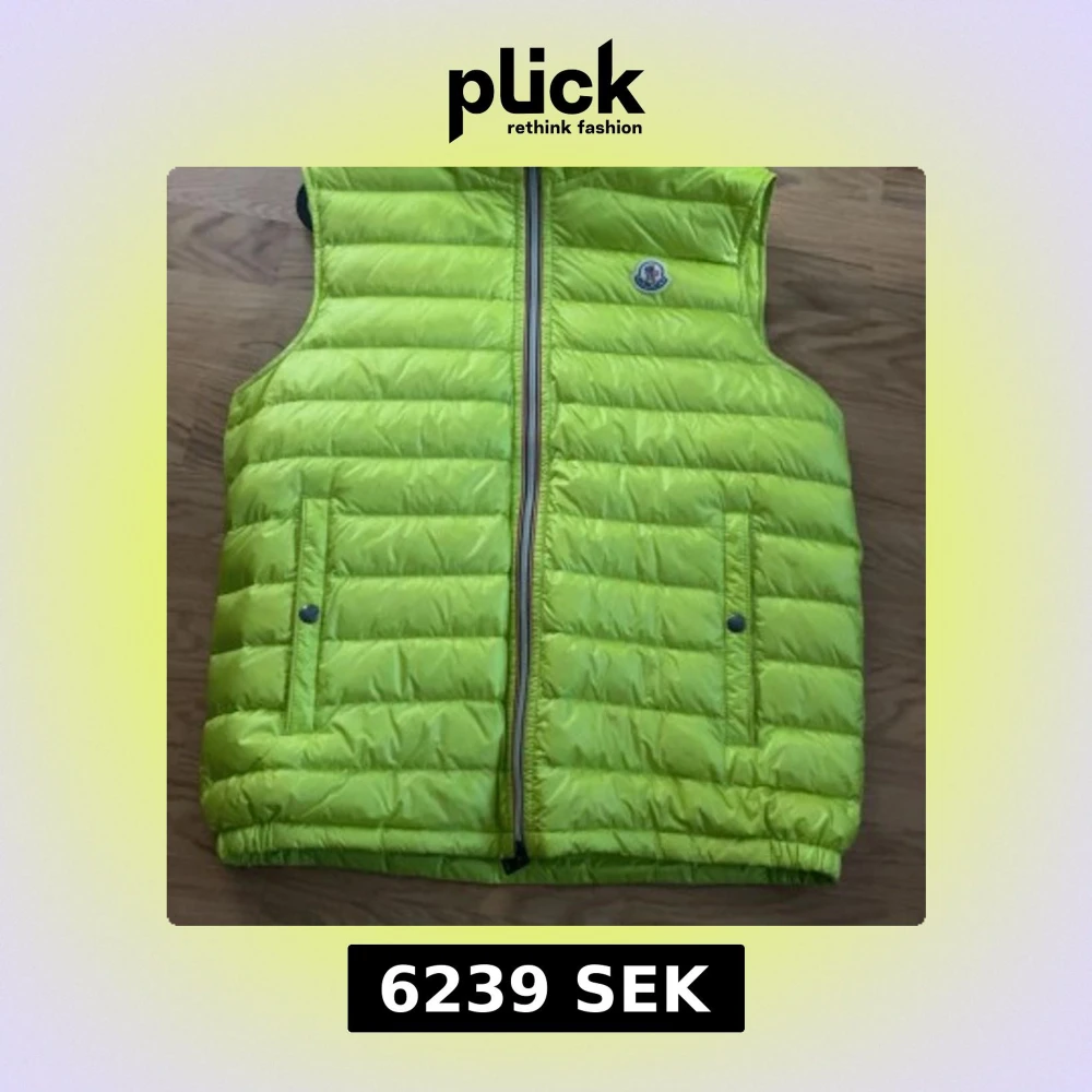 Säljer en riktigt snygg neongul dunväst från Moncler. Västen är quiltad med horisontella sömmar, har dragkedja framtill och två fickor med tryckknappar. Perfekt för lager-på-lager och sticker verkligen ut i mängden.