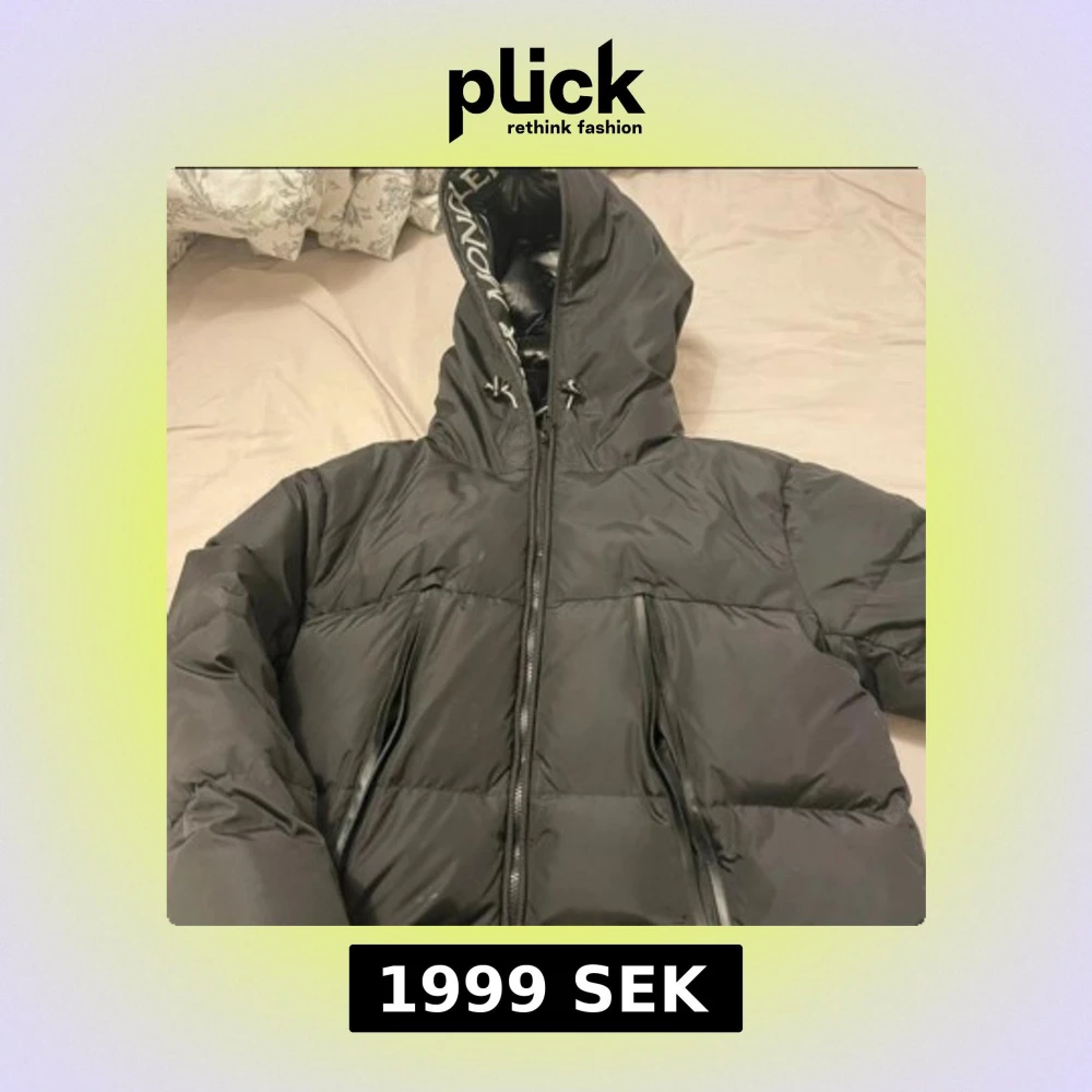 Snygg svart dunjacka från Moncler med huva och dragkedja. Jackan har Moncler-logga på ärmen och insidan av huvan. Perfekt för kyliga dagar.