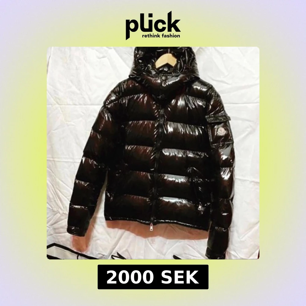 Snygg svart pufferjacka från Moncler med glansig finish och huva. Jackan har en dragkedja framtill och långa ärmar. Perfekt för kalla dagar med sin quiltade design som håller värmen.