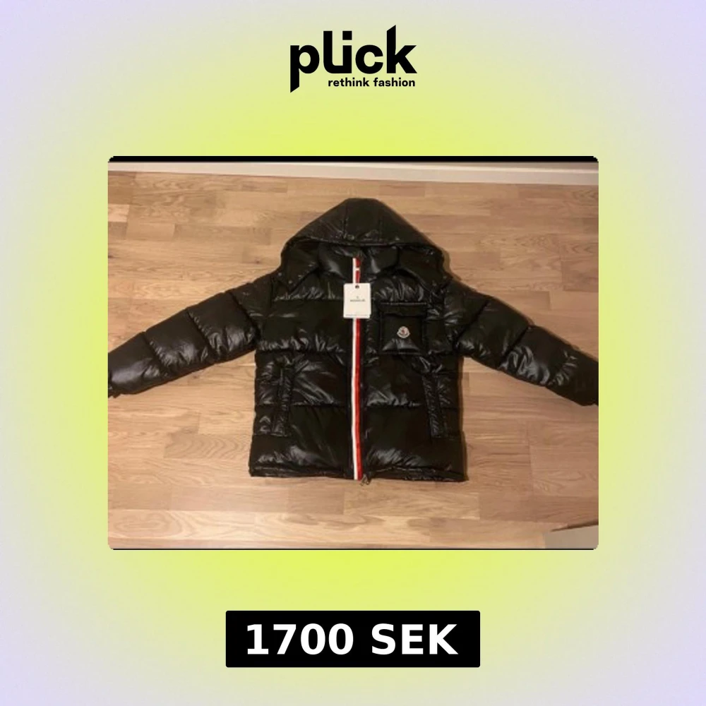 Svart pufferjacka från Moncler med glansig finish, huva och ikonisk logga på bröstfickan. Jackan har en rödvit dragkedja framtill och praktiska fickor med dragkedja. Perfekt för kalla dagar och har en riktigt clean look. Själv har jag storlek s men passar mig lite gran bara att den är lite tjock på mig men skulle rekommendera om du har m i storlek att köpa den då