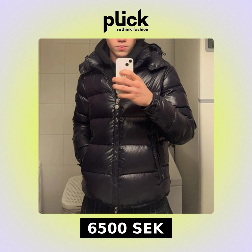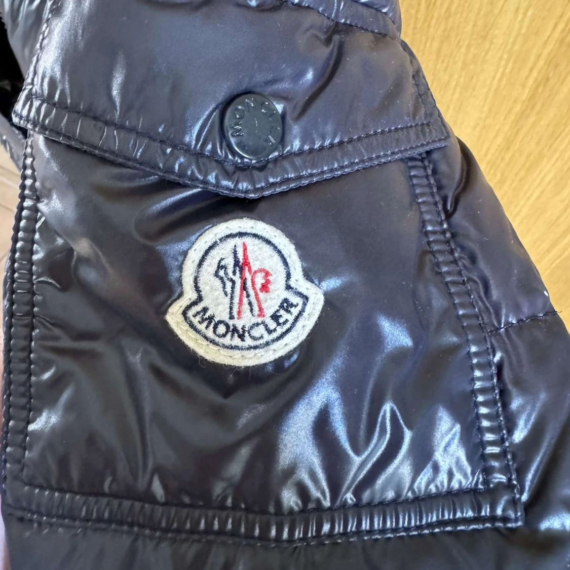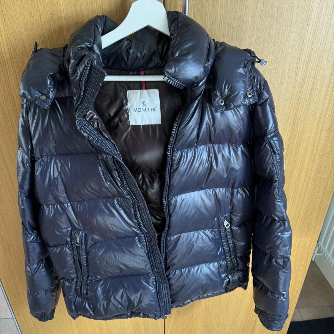 Moncler maya size 3(M) mörkblå den äldre versionen med brun insida bra skick lite waterstains o så men fin annars, 7/10 (ÄKTA SÅKLART)