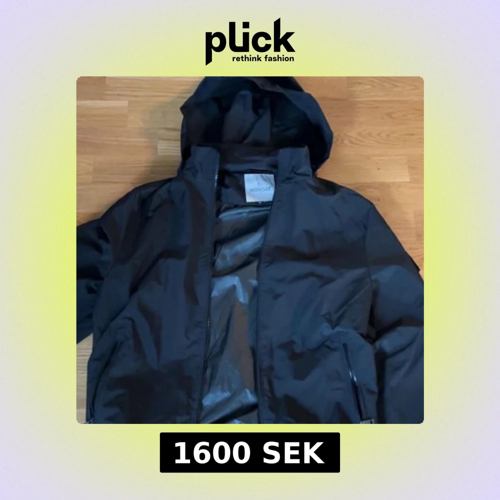 Svart vindjacka från Moncler med huva och dragkedja framtill. Jackan har Moncler-logga på bröstet, praktiska fickor med dragkedja och är tillverkad i lätt polyester. Perfekt för dig som gillar stilren och sportig look.