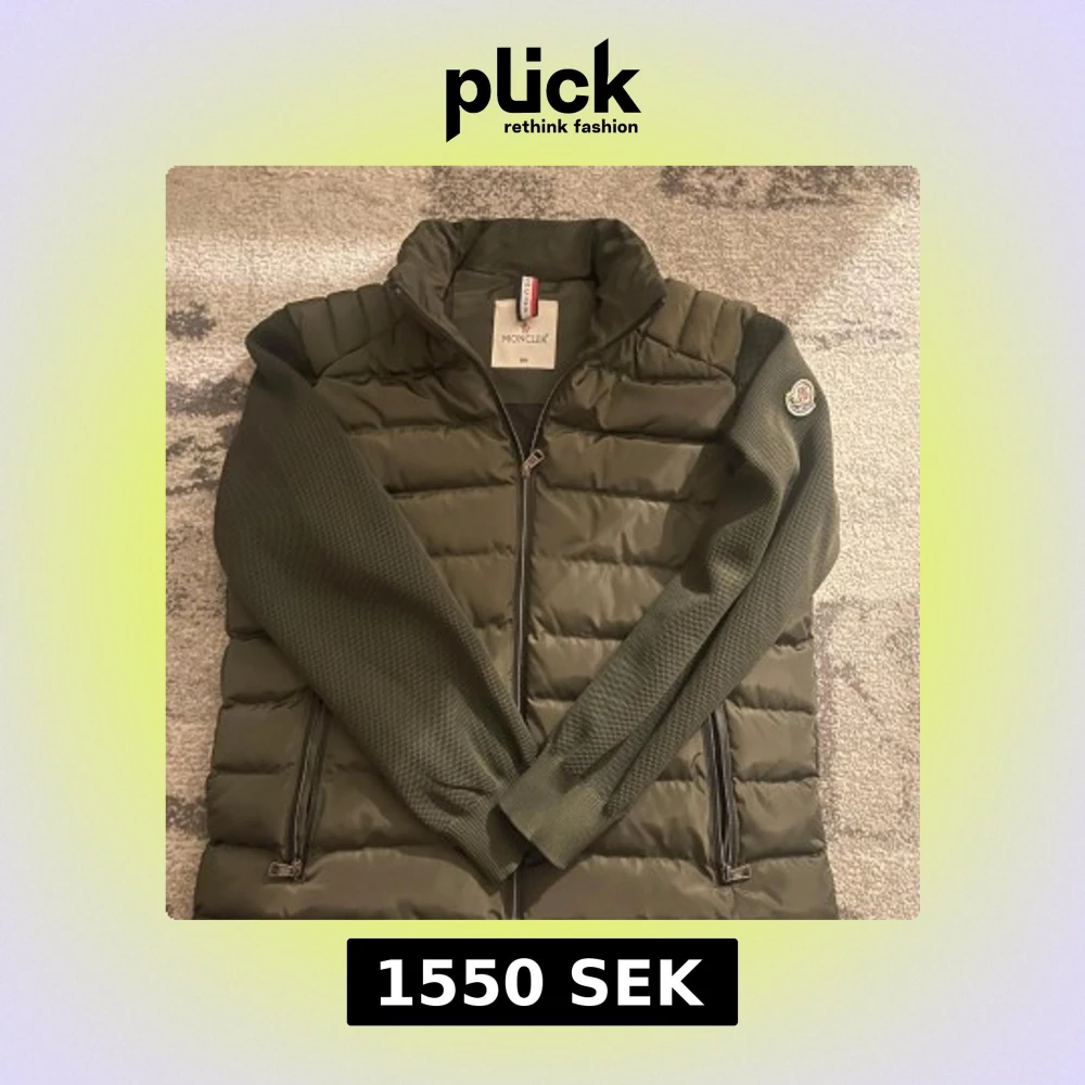 Säljer en olivgrön pufferjacka från Moncler med stickade ärmar och klassisk Moncler-logga på armen. Jackan har dragkedja framtill, två fickor med dragkedja och hög krage. Perfekt för dig som vill ha en snygg och sportig look med exklusiv känsla. Pris kan diskuteras vid snabb affär! Använd 1-2 gånger passade inte mig. (Helt ny)