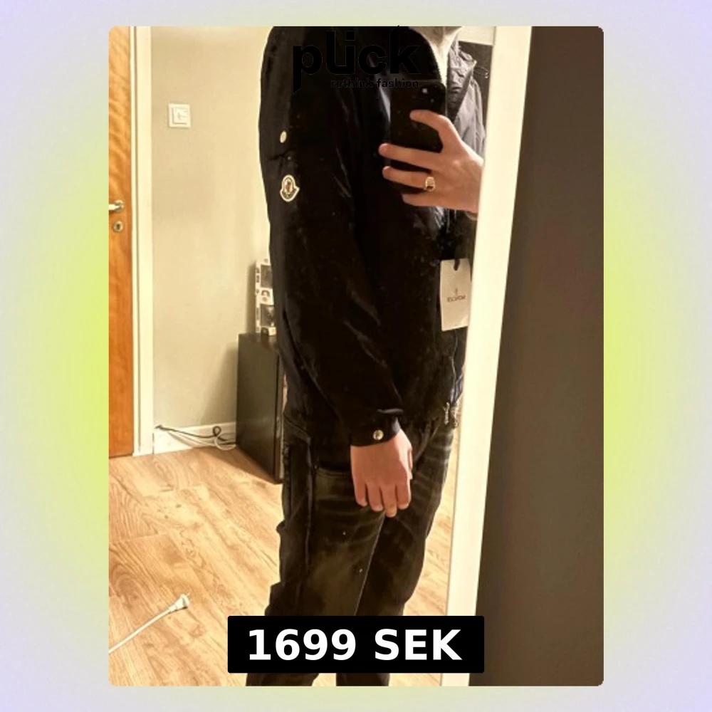 Säljer en svart vindjacka från Moncler med huva och snygga detaljer som dragkedja och knappar. Jackan har Moncler-loggan på ärmen och en clean, sportig look. Perfekt för dig som gillar stilrena och funktionella plagg. Passar dig som vill ha en jacka med cool vibe.