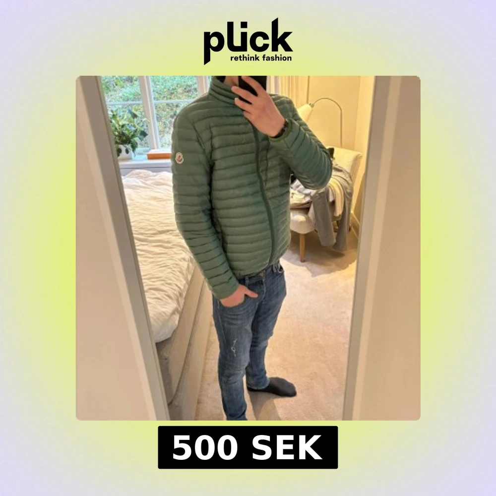 Säljer en stilren grön pufferjacka från Moncler med diskret logga på ärmen och dragkedja framtill. Priset därför jag inte har kvitto. Bra skick ✅. Storlek: M Skriv om ni har frågor 🙌