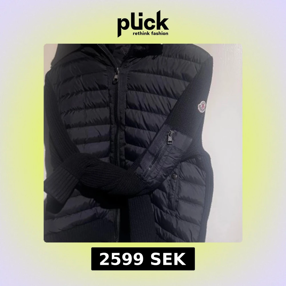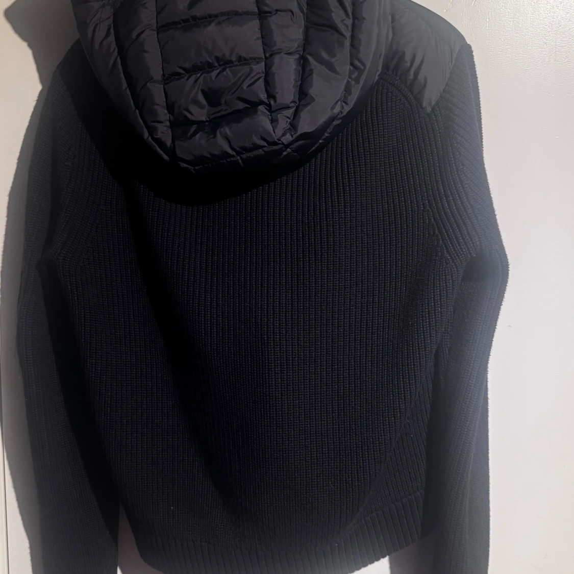 Svart Moncler Cardigan i storlek M. Den har tecken på användning där av priset. Den är sparsamt använd och inga tecken på stora skador, ända märkbara felen är enstaka lösa trådar. Har även lappar och tagg som kommer med. skriv för fler frågor!