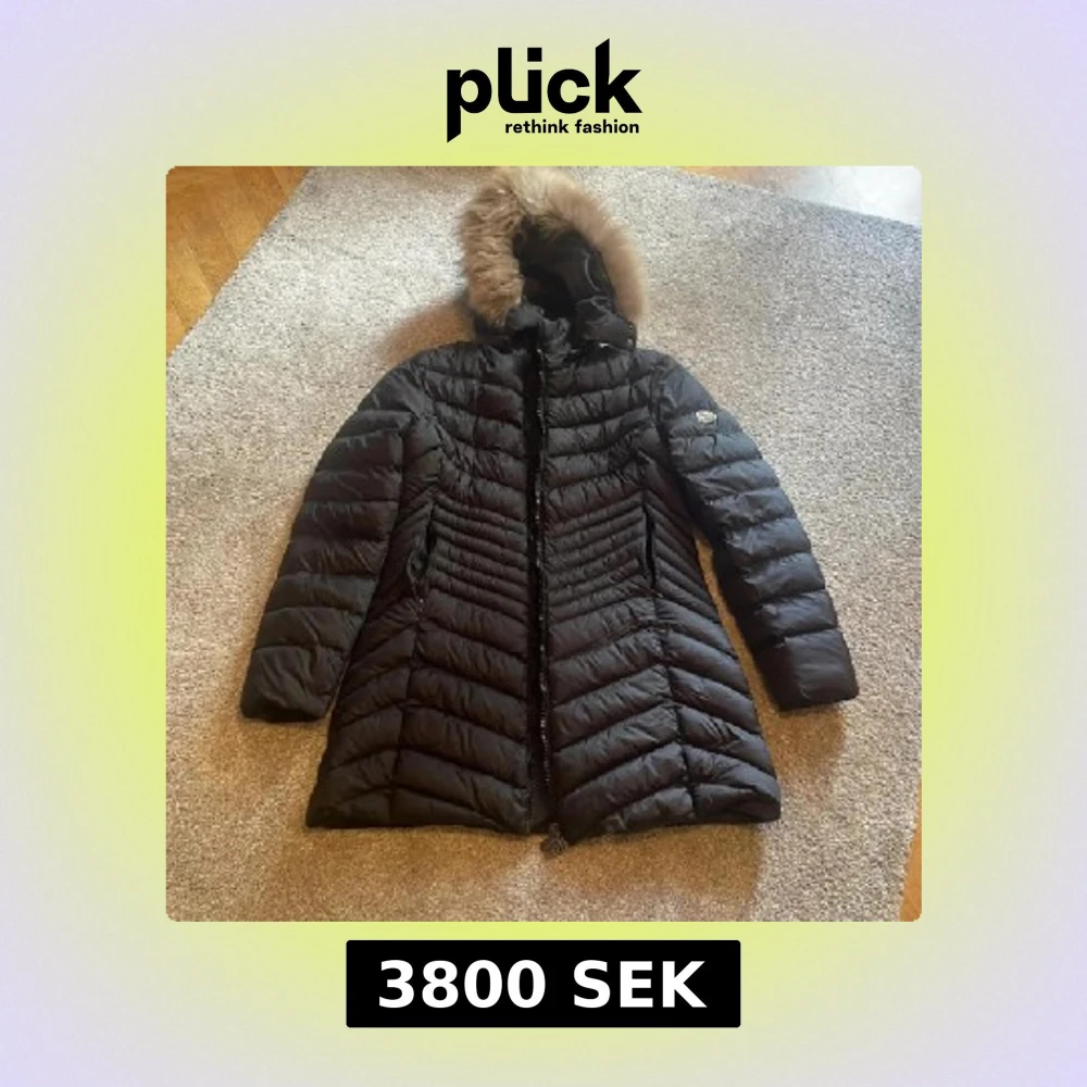 Snygg svart dunjacka från Moncler med figurnära passform, huva och pälskant. Jackan har långa ärmar, tvåvägsdragkedja och klassisk Moncler-logga på ärmen. Perfekt för kalla dagar när du vill vara både varm och stilren.Kostar samma ny ca 28 tusen