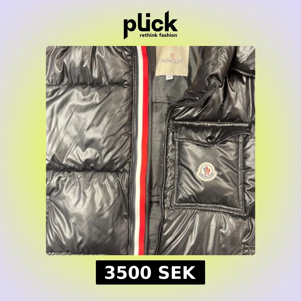 Säljer en svart pufferjacka från Moncler med en snygg glansig finish. Jackan har en dragkedja och en praktisk ficka med Moncler-logga på bröstet. Perfekt för kyliga dagar med stil.