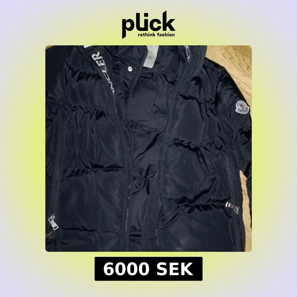 Svart pufferjacka från Moncler med stor huva och tydlig logga på ärmen. Jackan har dragkedja framtill, två sidofickor med dragkedja och Moncler-tryck längs insidan av huvan och dragkedjan. Passformen är normal och jackan är perfekt för kalla dagar. Yttersta dragkedjan är utbytt men skickar med orginal kedjan med, samt att det är ett hål i höger fickan men ser rätt lätt ut att sy! Storlek M men passar mig som även brukar ha L! Tar även bud!