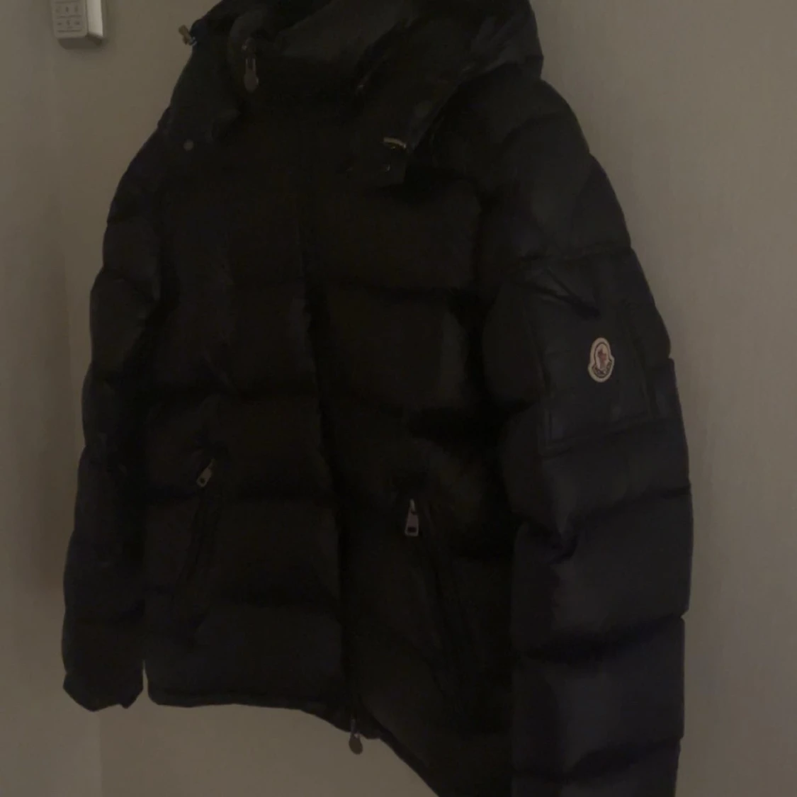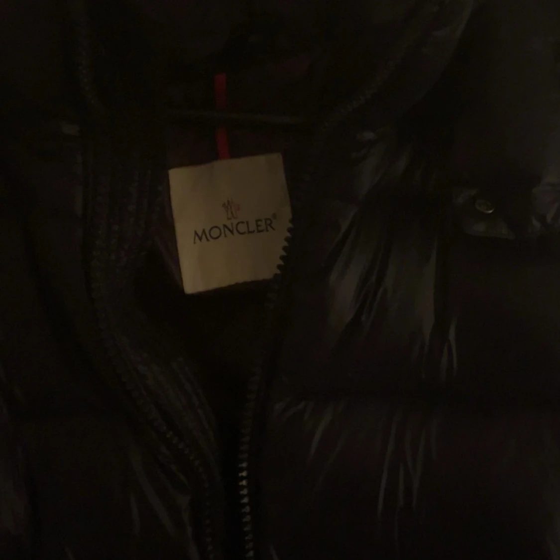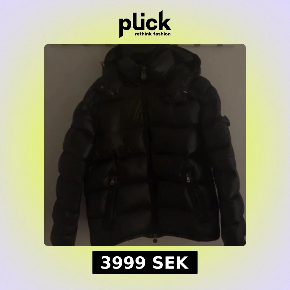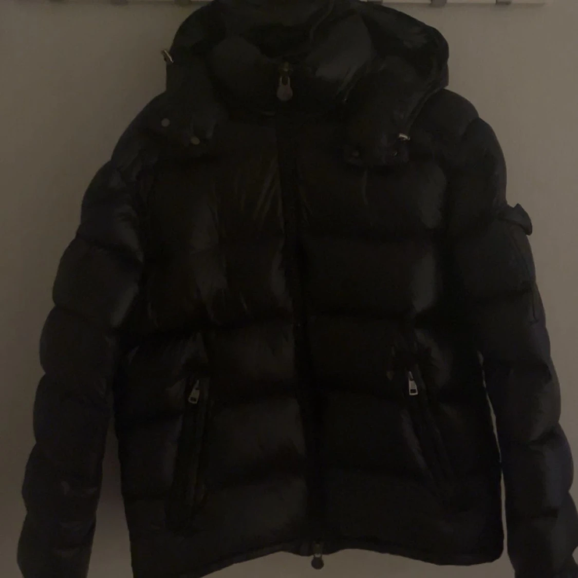 Säljer en stilren svart dunjacka från Moncler. Jackan har en glansig finish och är utrustad med dragkedja och flera praktiska fickor. Perfekt för kyliga dagar med sin varma och bekväma design.