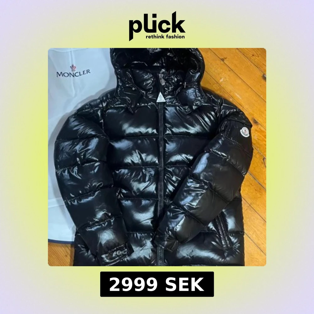 Säljer en svart pufferjacka från Moncler med glansig finish och huva. Jackan har Moncler-logga på ärmen, dragkedja framtill och två sidofickor med dragkedja. Passformen är normal och jackan är perfekt för kalla dagar. Riktigt snygg och stilren modell.