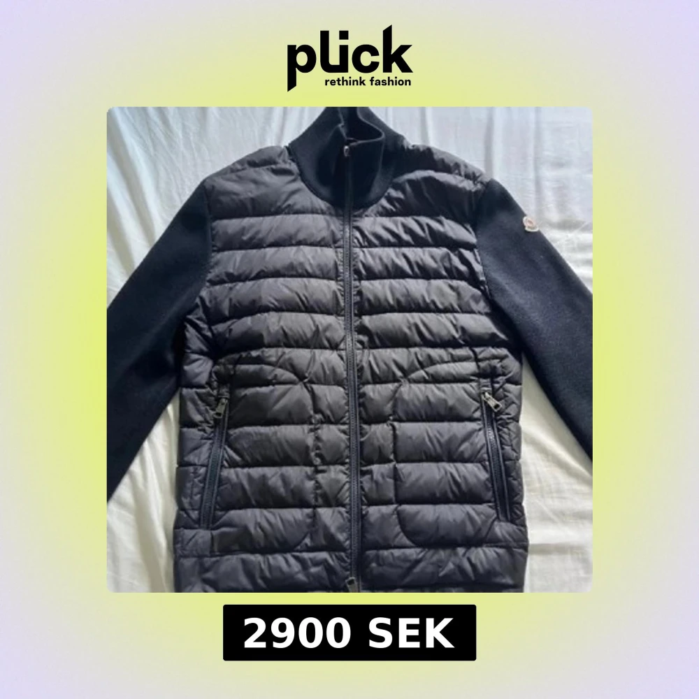 Snygg svart dunjacka från Moncler med quiltad front och ärmar i stickad ull. Jackan har dragkedja framtill, två fickor med dragkedja och klassisk Moncler-logga på ärmen. Perfekt för dig som vill ha en stilren och exklusiv look. ÄKTA!