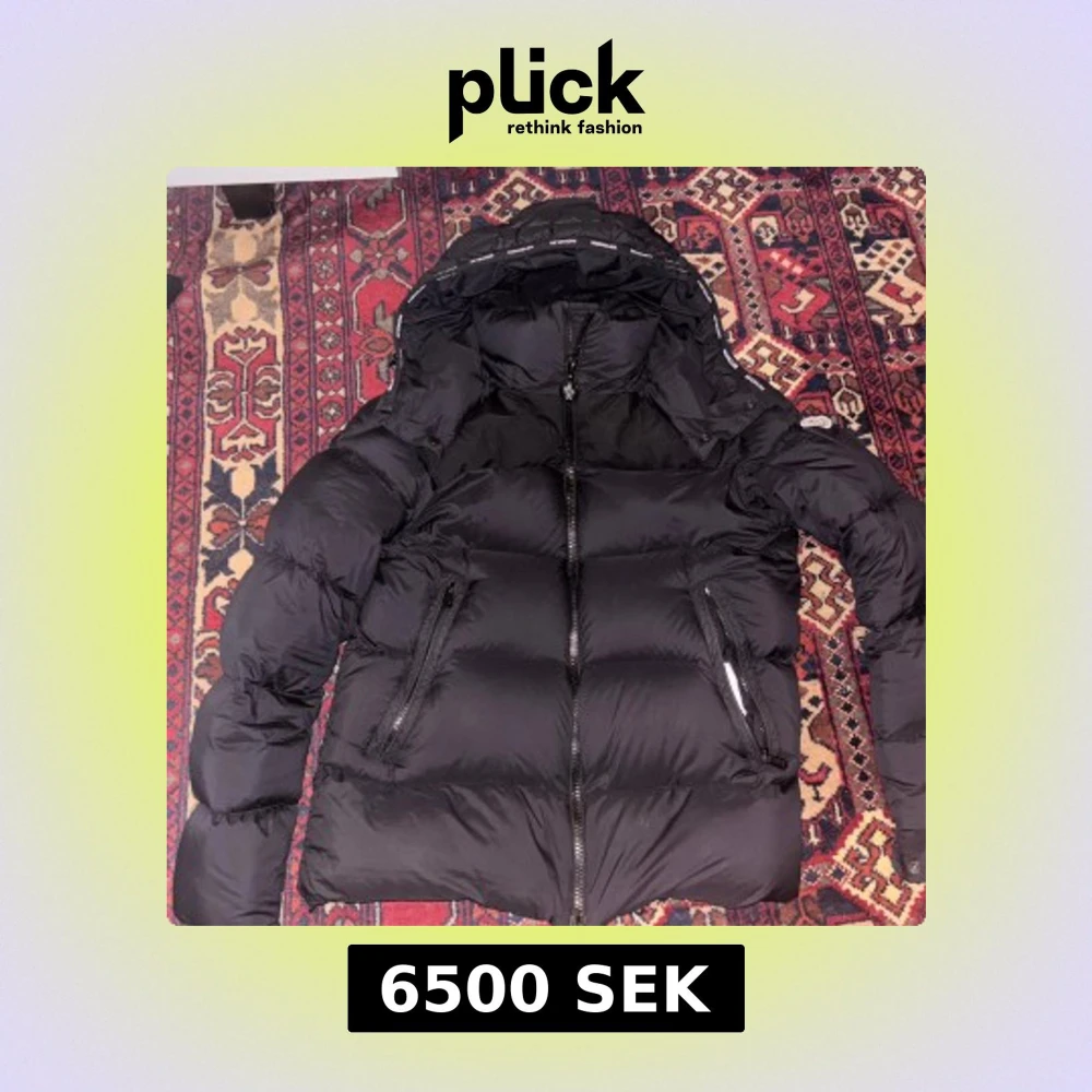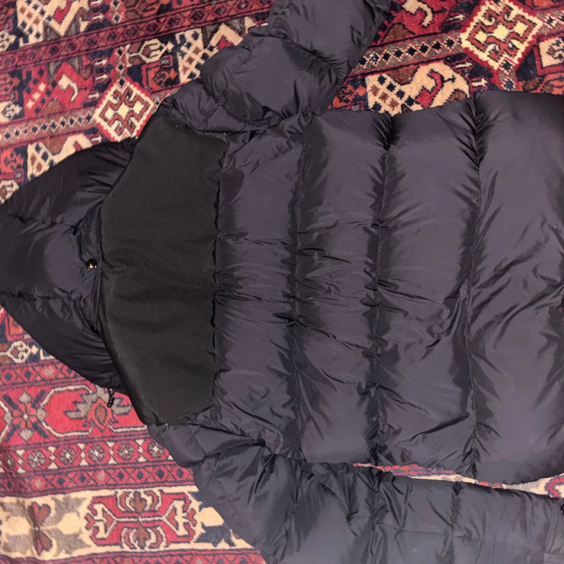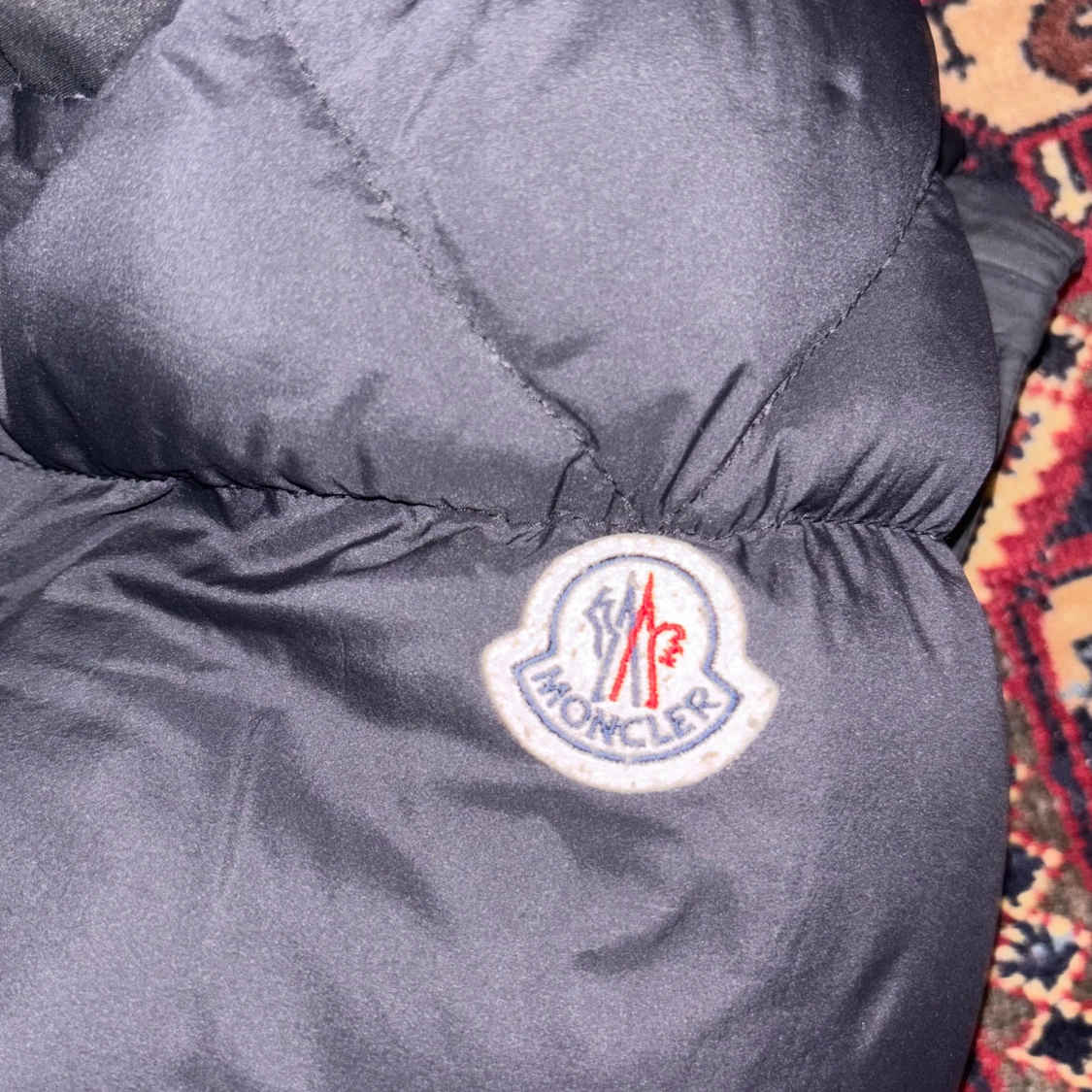 Säljer en snygg svart dunjacka från Moncler. Jackan har en pufferdesign med dragkedja och huva, perfekt för kyliga dagar. Den är långärmad och har en stilren look som passar till det mesta. Perfekt för dig som vill hålla värmen med stil!