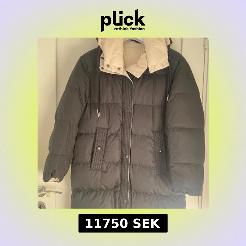 Säljer en vändbar dunjacka från Moncler i svart och beige. Jackan har en hög krage och långa ärmar, perfekt för kalla dagar. Den är utrustad med både dragkedja och knappar för extra skydd mot kyla. Moncler-logga på ryggen. I jätte fin skick. Finns lite fläckar men det syns inte, kan skicka bilder. Kvitto finns plus dustbag. Pris kan diskuteras - Kan mötas i Halmstad eller Båstad