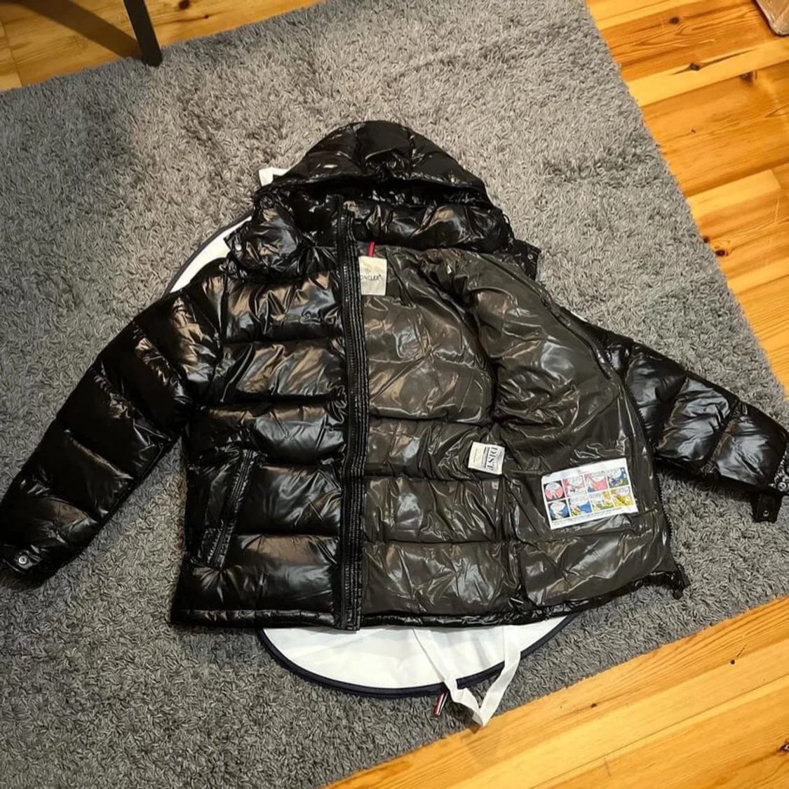 Helt ny och oanvänd Moncler Maya jacka. 10/10 skick. Väldigt fin och bekväm jacka. Det är storlek 3, vilket motsvarar M/L, skulle nog säga att de passar både M och L. Bilderna är tagna i olika ljus, från bild 2 och 5 är det väldigt mycket ljus, därför glänser den mycke, men den är inte så glansig. Den har en fungerande Nfc tag som ni ser på bild 5. Köp dig en billig vinter jacka så du är redo för vintern. Rekommenderar starkt!