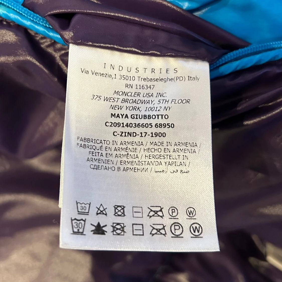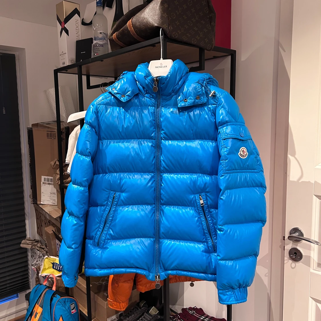 Moncler Maya i den otroligt sällsynta färgen Sky Blue, väldigt ovanligt att hitta. Storlek 1 - S, 7-8/10 skick, små flaws vid höger arm/handled. Nypris 18.000kr mitt pris endast 5800! Kommer med moncler galge