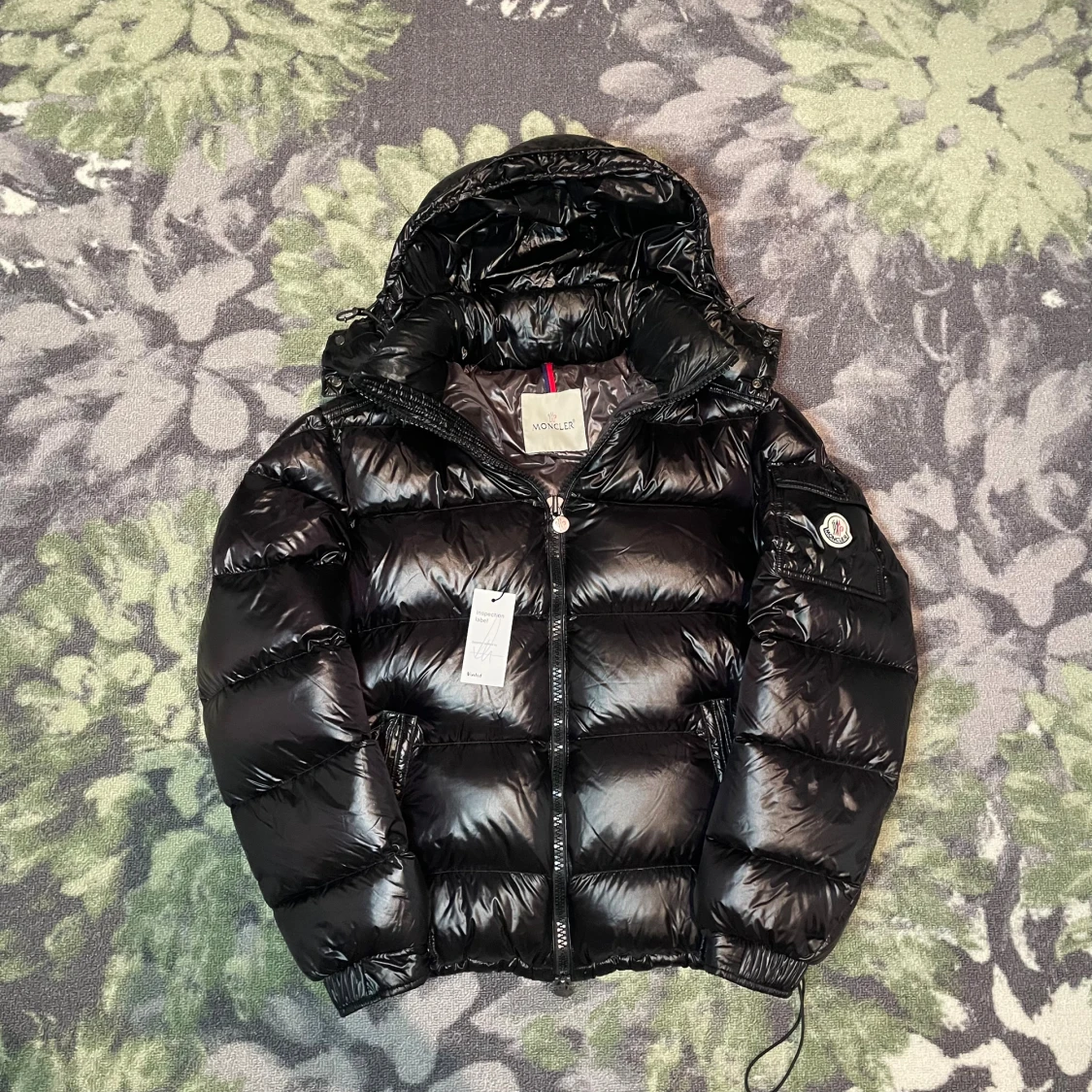 Säljer en svart, glansig pufferjacka från Moncler med huva och dragkedja. Jackan har klassisk Moncler-logga på ärmen och coolt serietryck på insidan. Fylld med dun och har två fickor framtill. Perfekt för kalla dagar när du vill hålla stilen. Storlek 2/M Skick för mer bilder Nfc scan funkar på flera ställen‼️
