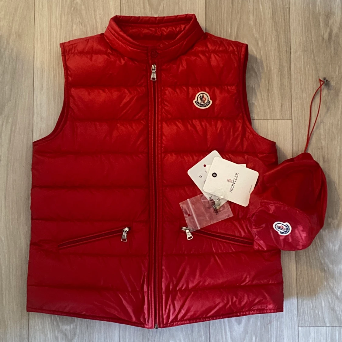 Monclerväst i nyskick. Taggar och dust bag finns kvar (i bilden). Storlek 14Y/164cm. Passar XS. Nypris 4000kr