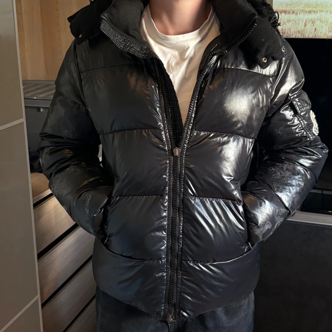 Storlek M i herr, använt skick, köpt från Merchsweden, svart Moncler Himalaya, har bild på betalningkvittens för jackan