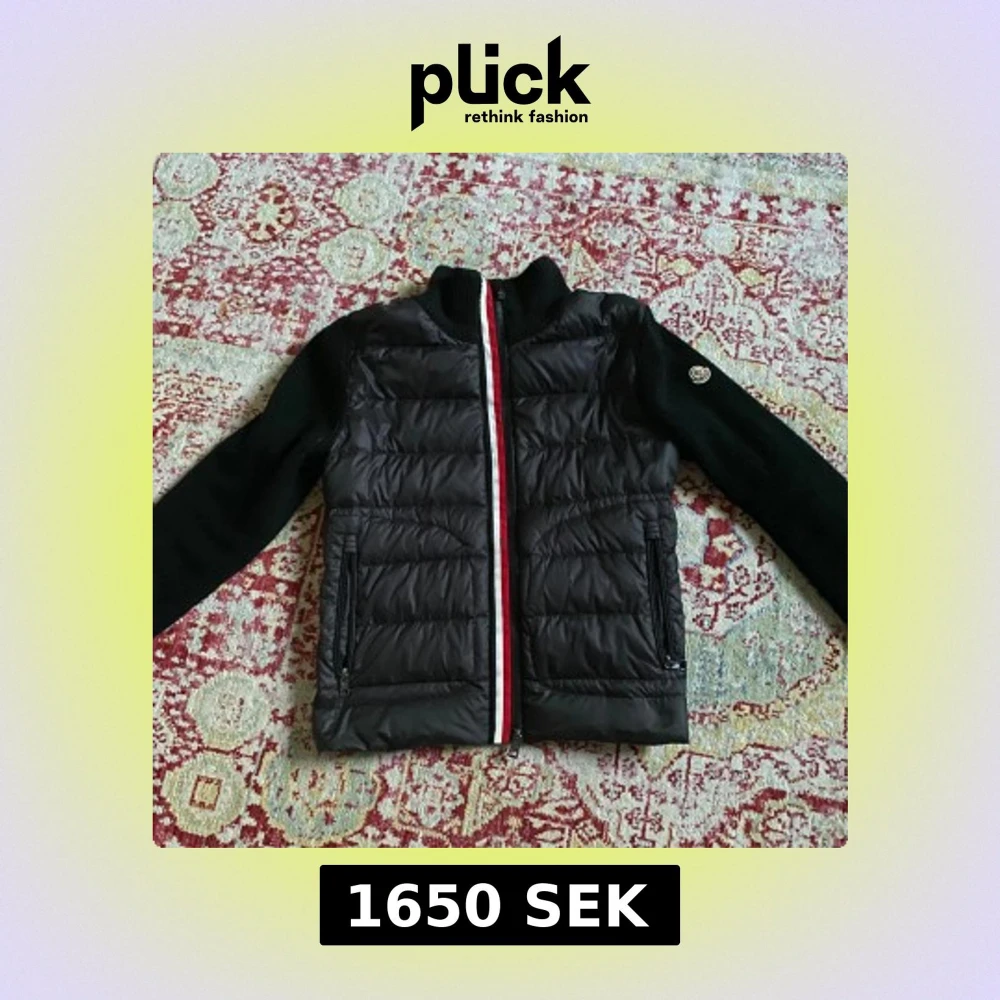 Snygg svart moncler cardigan som passar både kvinna, det finns en liten defekt på högra bröstet men det är inget man märker vid användning.