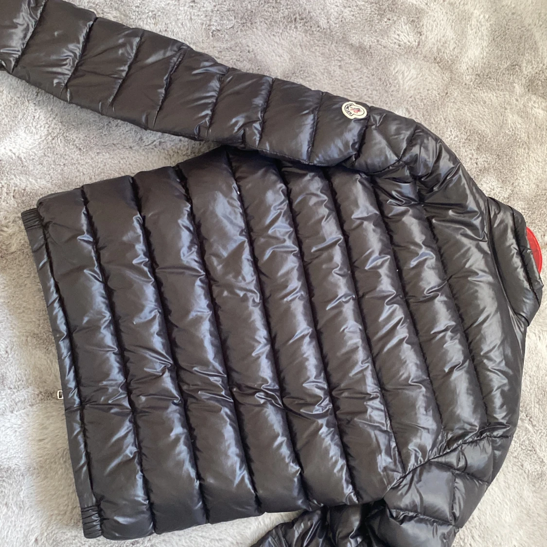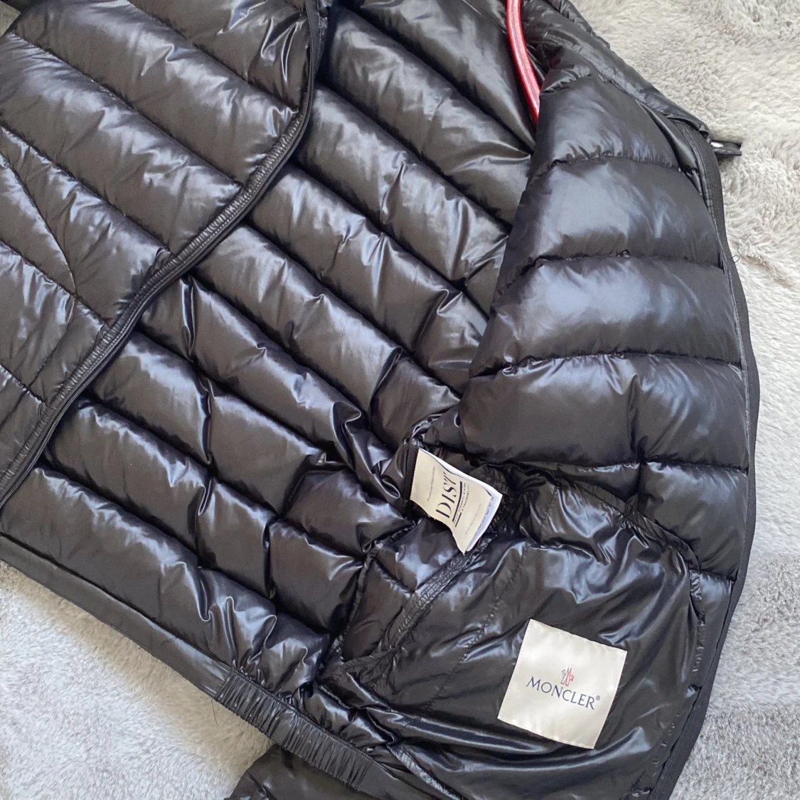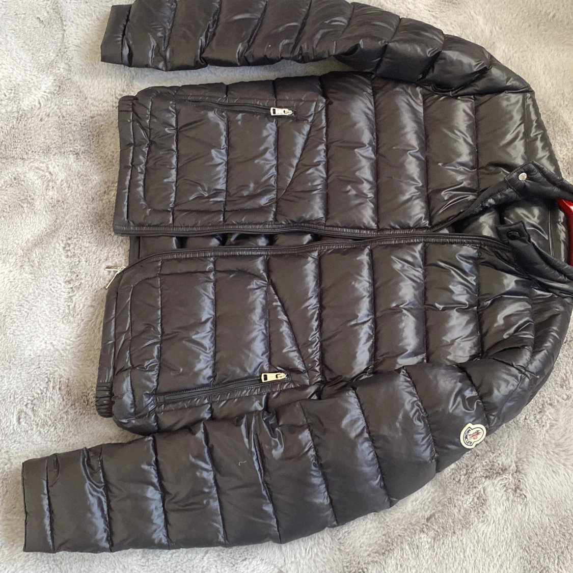 En svart moncler jacka, storlek 2. Priset diskuteras