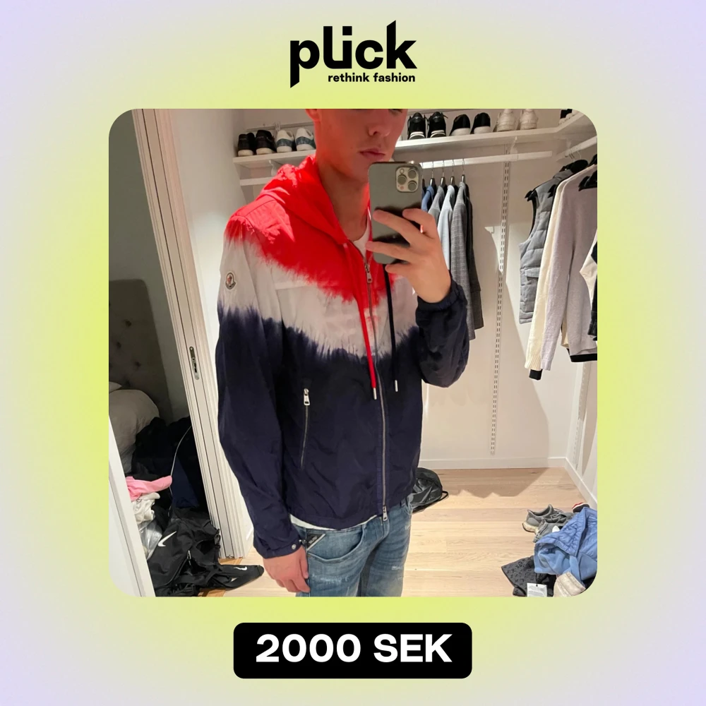 Snygg vindjacka från moncler, i röd, vitt & mörkblå storlek 3 Passar L/M jag är 187 och väger 65kg.