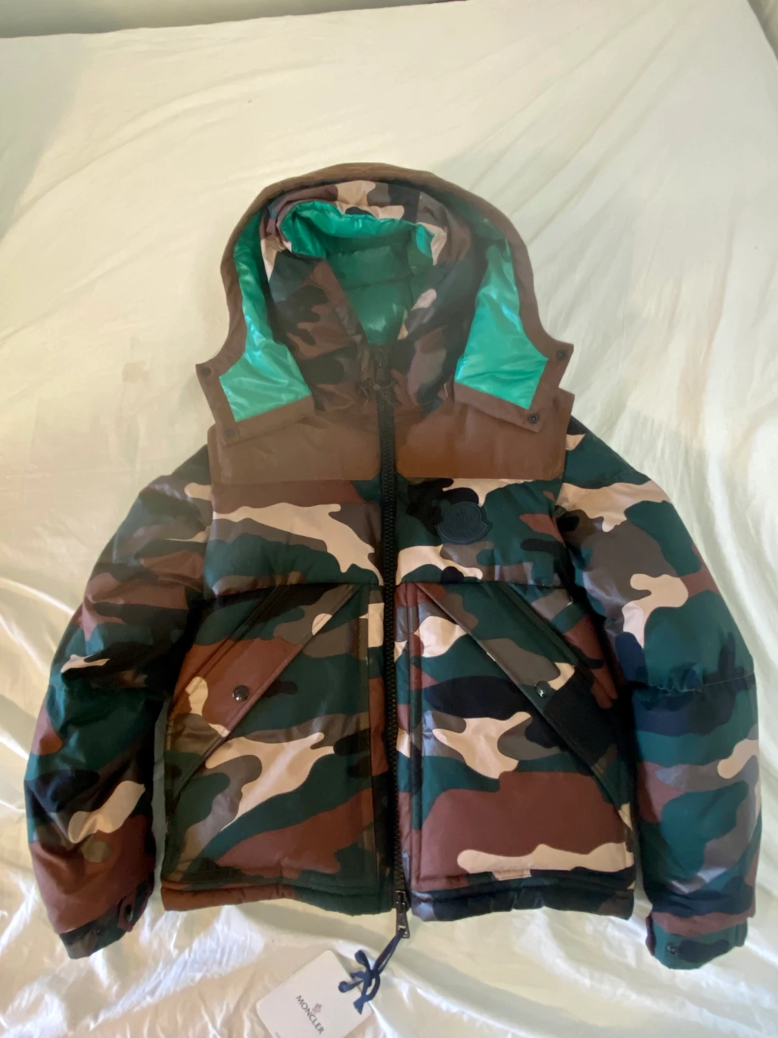 Moncler camo cavet jacka Helt ny med tags Armana kan tas bort så den blir en väst och en av dem två luvorna kan med tas bort Strlk M