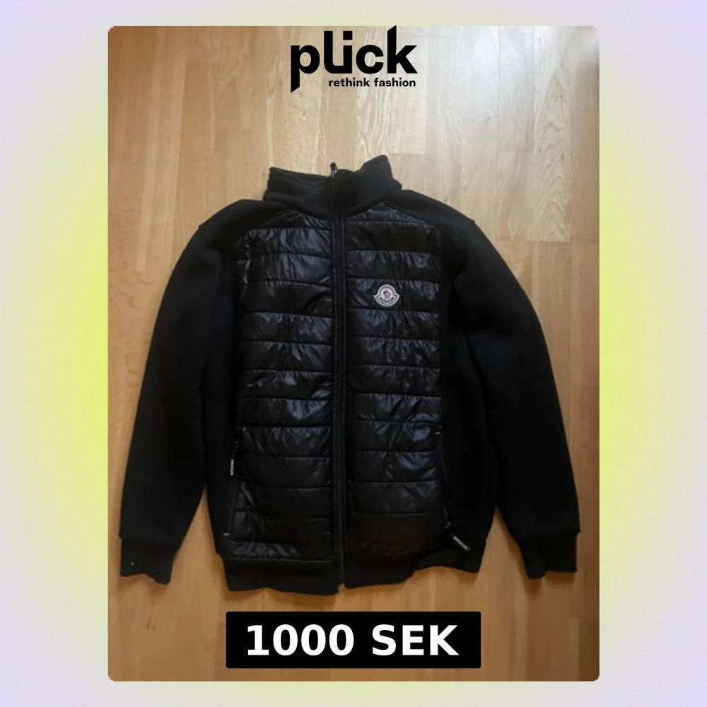 Svart pufferjacka från Moncler i storlek M. Jackan har quiltad framsida med glansigt material och två dragkedjeförsedda fickor. Hög krage och Moncler-logga på bröstet. Ärmar och rygg i mjukare tyg för extra komfort. Perfekt för kyliga dagar. Priset kan diskuteras