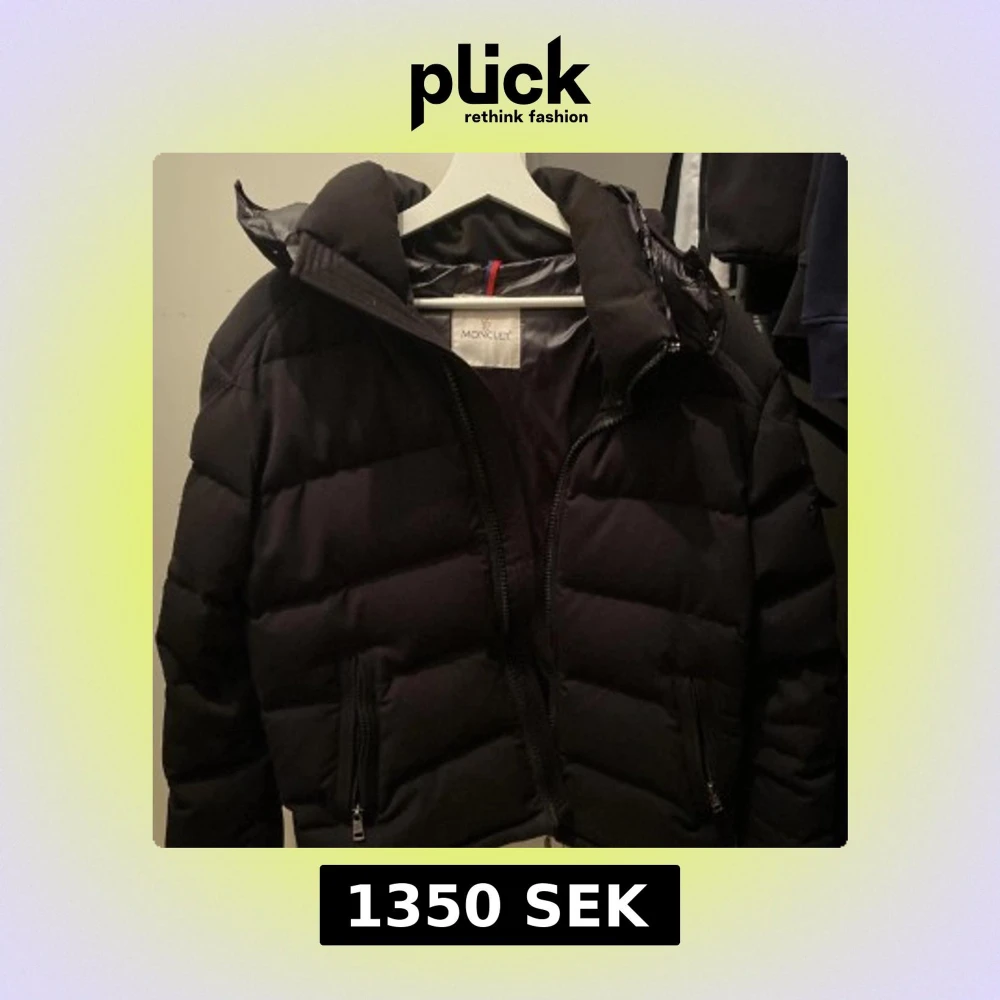 Snygg svart dunjacka från Moncler med huva och dragkedja. Jackan har en klassisk pufferdesign och Moncler-logga på ärmen. Perfekt för kyliga dagar.