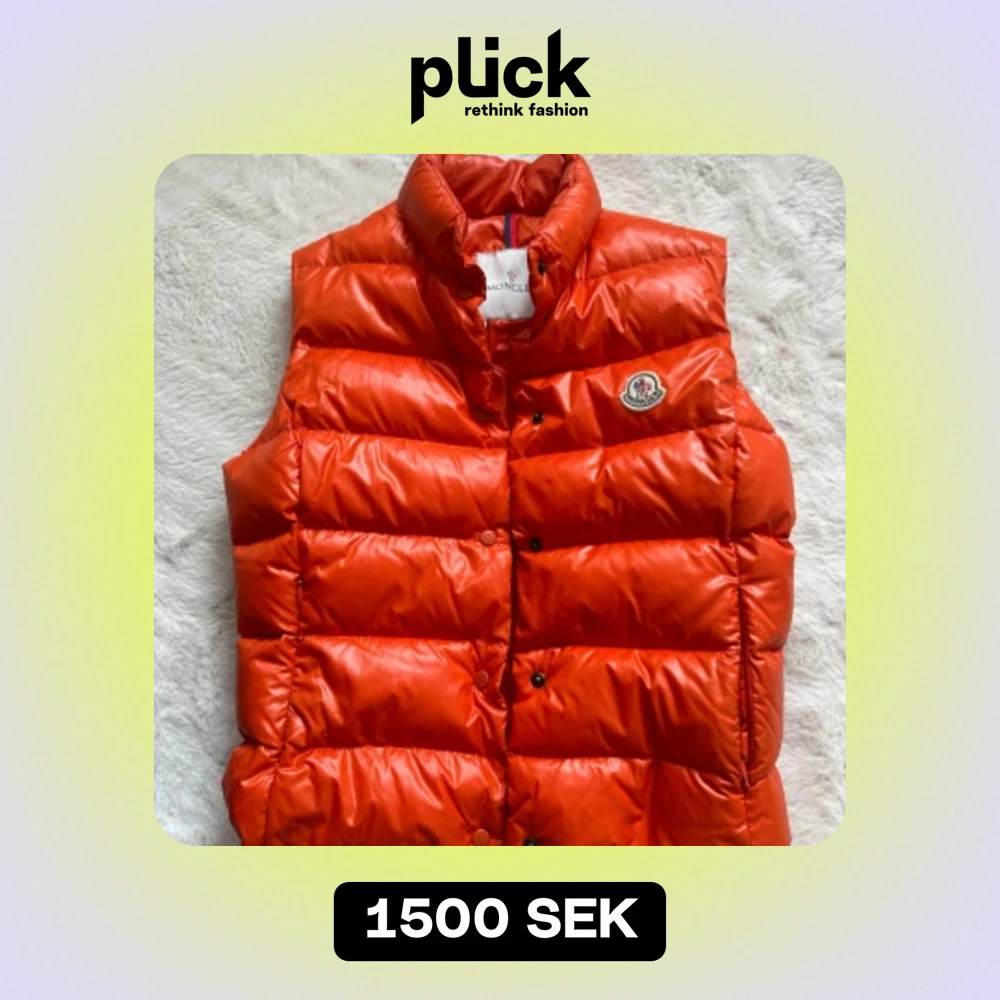 Säljer min äkta orangea Moncler väst som jag har köpt på Sellpy, den är i fint skick 🤎 passar mig perfekt som har xs