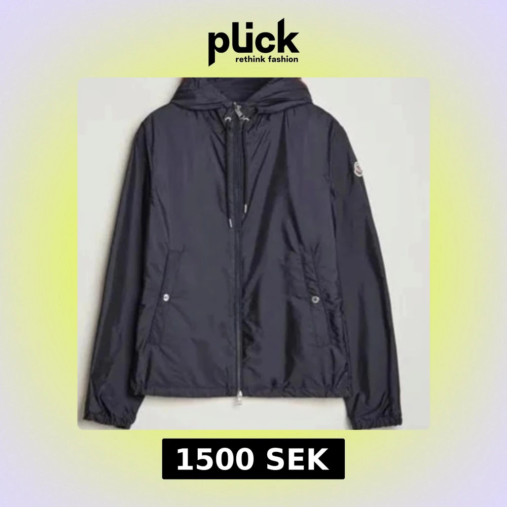 Snygg svart vindjacka från Moncler med huva och dragkedja framtill. Jackan har långa ärmar och praktiska fickor med knappar. Perfekt för blåsiga dagar!