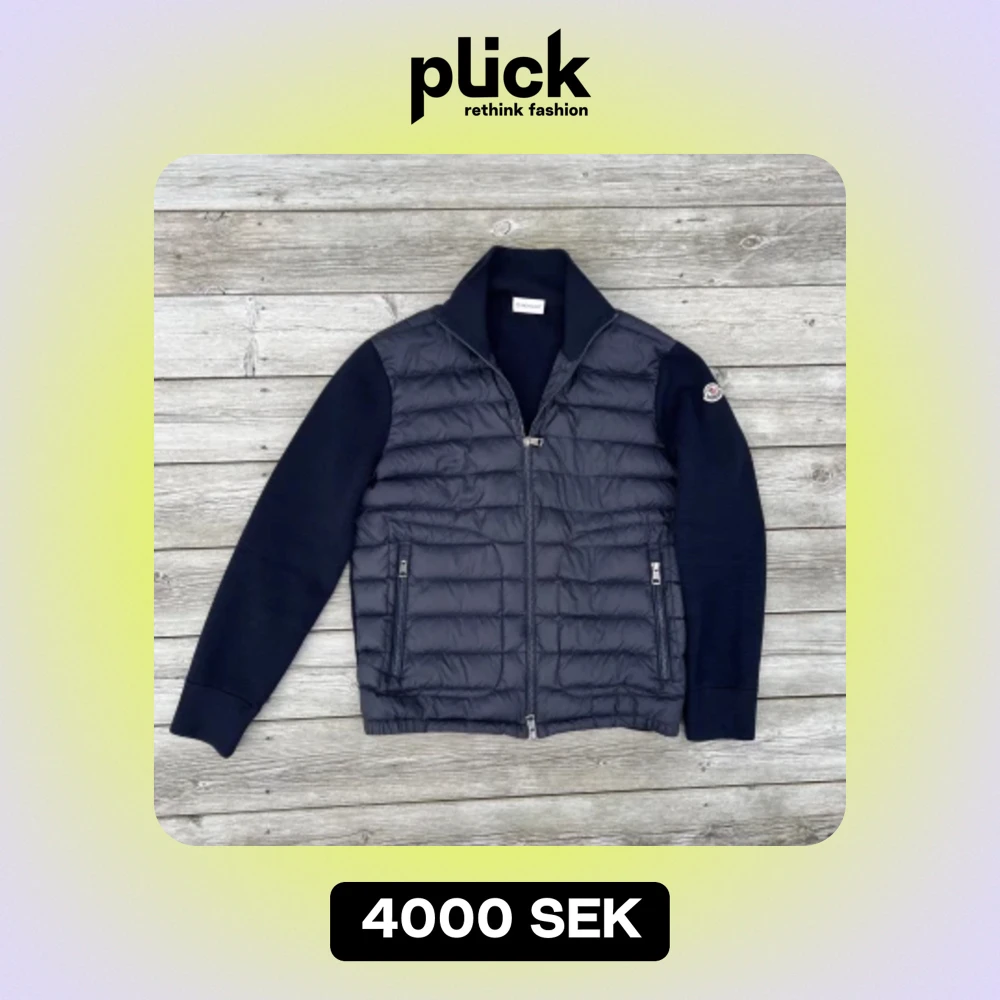 Marinblå. Storlek S. Fint skick. Id kod finns i jackan (moncler.com), kan skicka bild vid intresse. Galge och påse från Moncler medföljer. Ej intresserad av byten.
