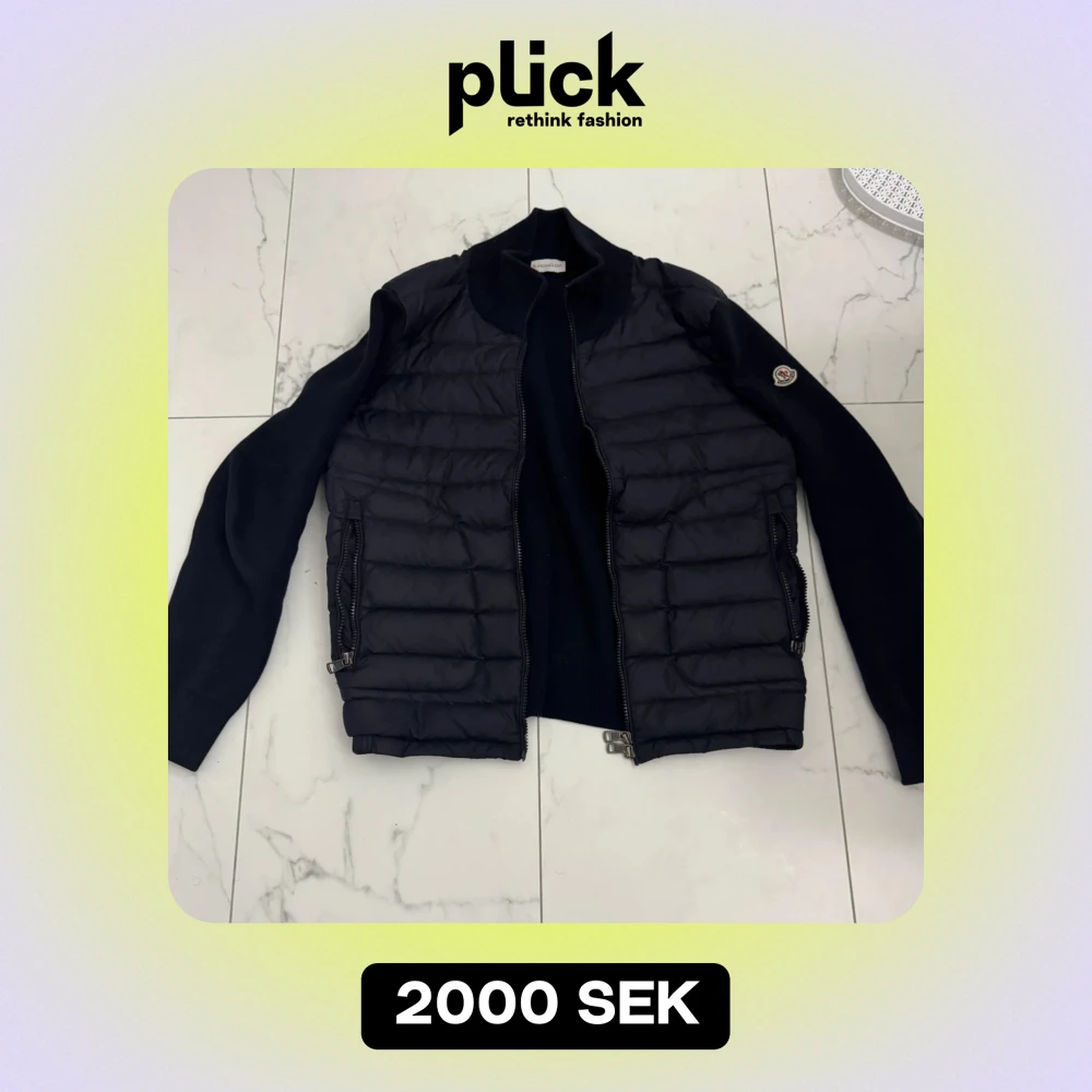 En mörkblå moncler cardigan i 6/10 skick sitter bra i storlek och S och även XS och är jävligt fet