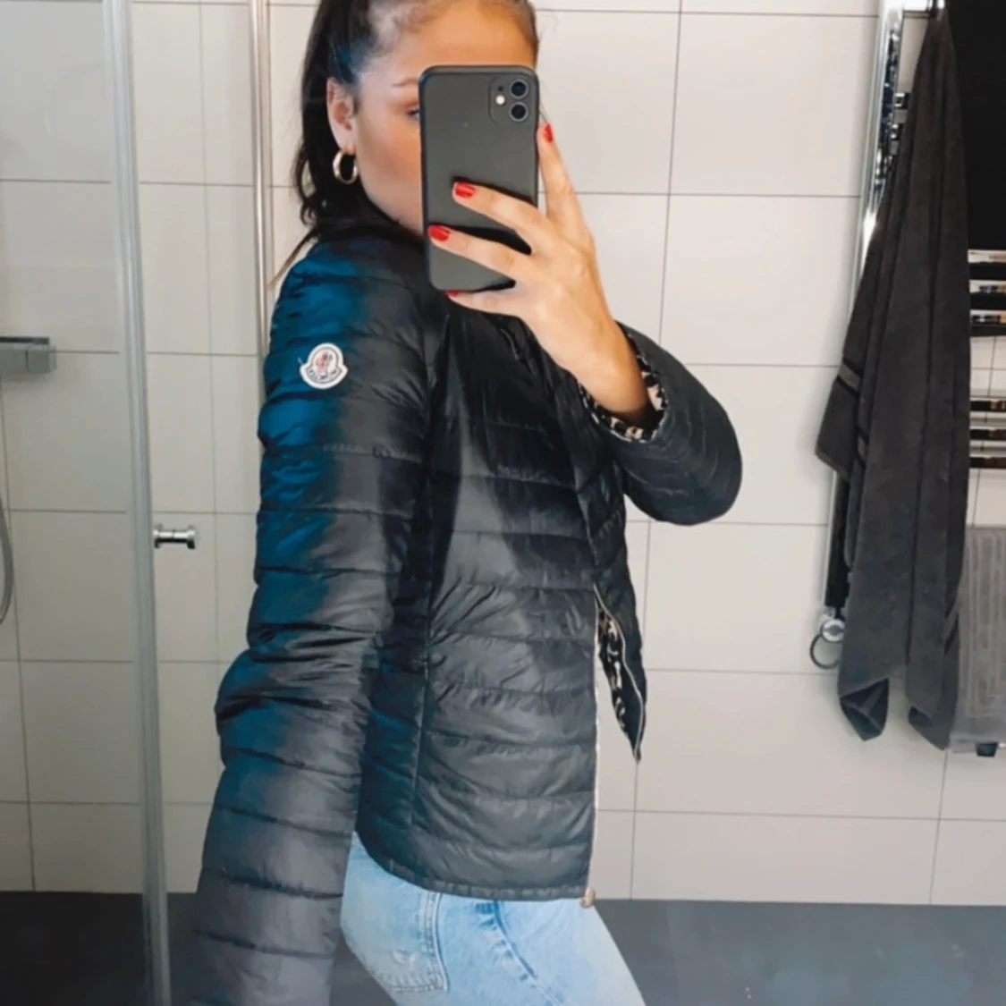 Tunnare jacka från Moncler (ja den är äkta) i väldigt fint skick förutom att en del av dragkedjan är borta så man måste dra upp hela vägen och sen ner igen för att kunna stänga jackan, därav det billiga priset. Jag hade den alltid öppen :) Storlek 36 (budet ligger på 2000)