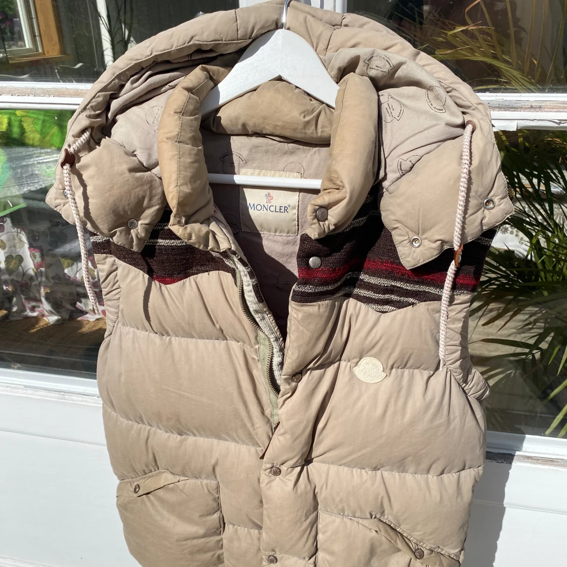Hej, säljer en Moncler väst i beige färg med stickade detaljer. Unik och omöjlig att få tag på. Perfekt för dig som inte vill se ut som resten. Nypris 12.000kr. Avtagbar huva. Storlek M. Använt skick. Pris kan diskuteras. Hör av dig vid intresse!