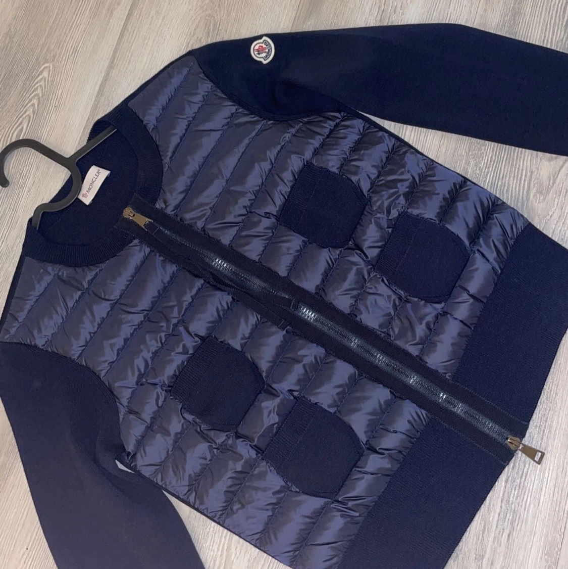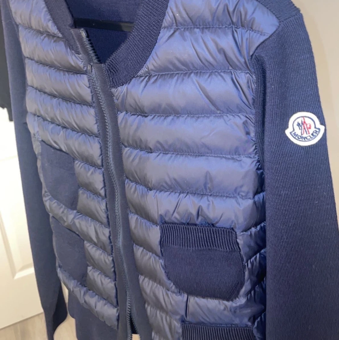 Helt ny moncler cardigan i färgen navy. Storlek xs. Ettiketterna är kvar och den är äkta. Fick i present för 1 vecka sedan men säljs då storlek inte passar. Kan ej göra retur då den är köpt i usa. Modellen är slutsåld överallt. Nypris 7800 👑