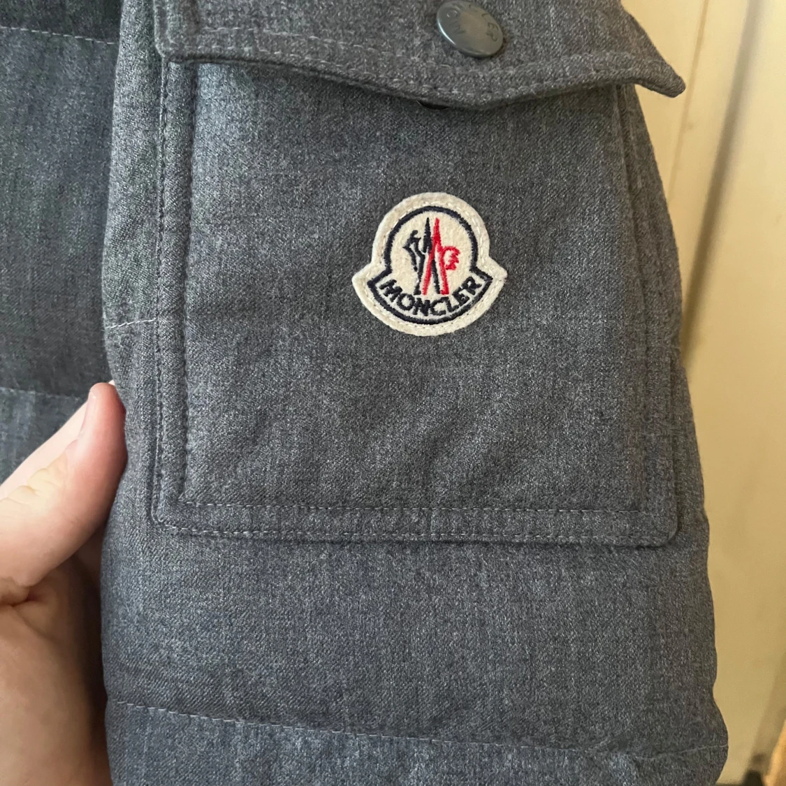 Grå moncler montgenevre jacka med olivgröna detaljer | Storlek 2 vilket motsvarar M | Skick 9/10 finns någon liten defekt annars i princip nyskick.