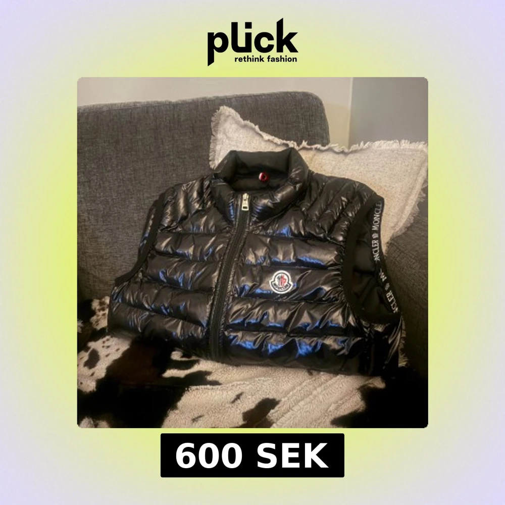 Svart, glansig dunväst från Moncler med quiltad design och dragkedja framtill. Västen har hög krage och Moncler-logga på bröstet samt logotypband längs axlarna. Perfekt för lager-på-lager och streetstyle. Snygg, sportig look med normal passform. INTE RIKTIGT!!!!