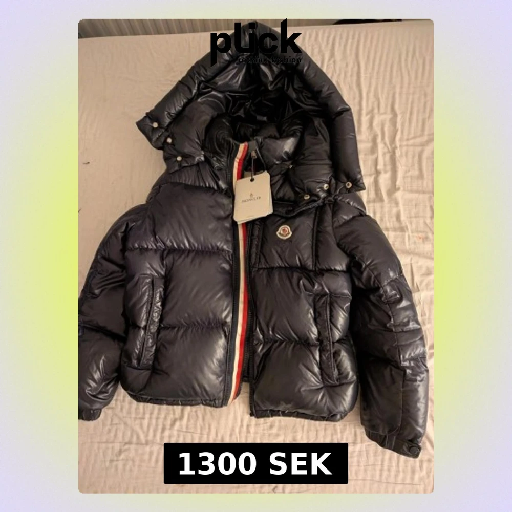 Här har vi en riktigt nice Moncler puffer jacka! Den är lagad när den varit trasig på ett ställe nära cartonen, men ingen fara inget man ser utanför jackan och den är EXTREMT varm och kommer i sin fina Moncler påse o lappar! Storlek 158/165)