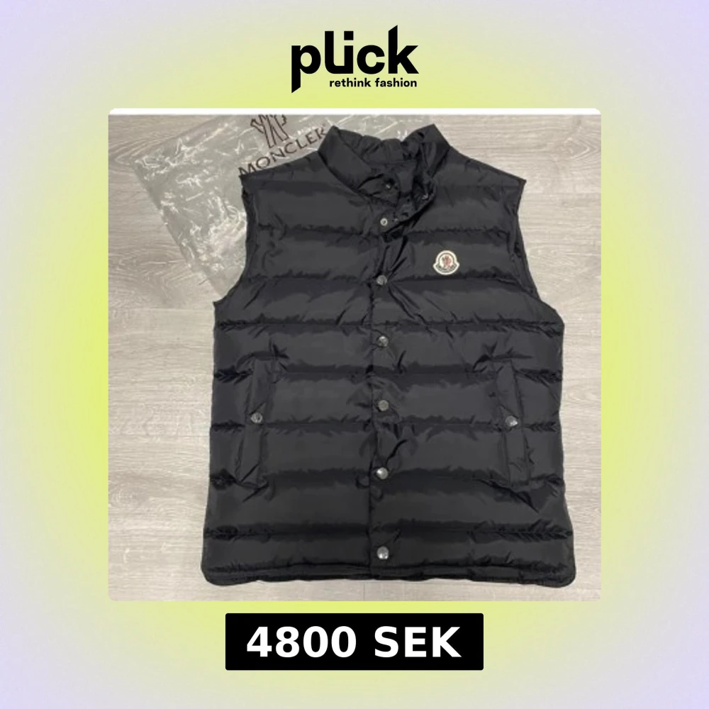 Snygg svart dunväst från Moncler med klassisk logga på bröstet. Västen har hög krage, knappar framtill och två fickor med lock. Perfekt för lager-på-lager och ger en clean, sportig look.