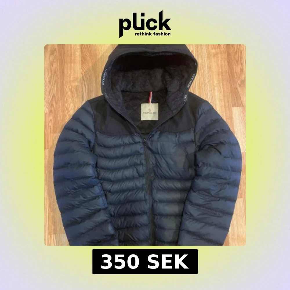 Säljer en snygg svart dunjacka från Moncler med huva och dragkedja. Jackan har en quiltad design och Moncler-logga på insidan. Perfekt för kyliga dagar.