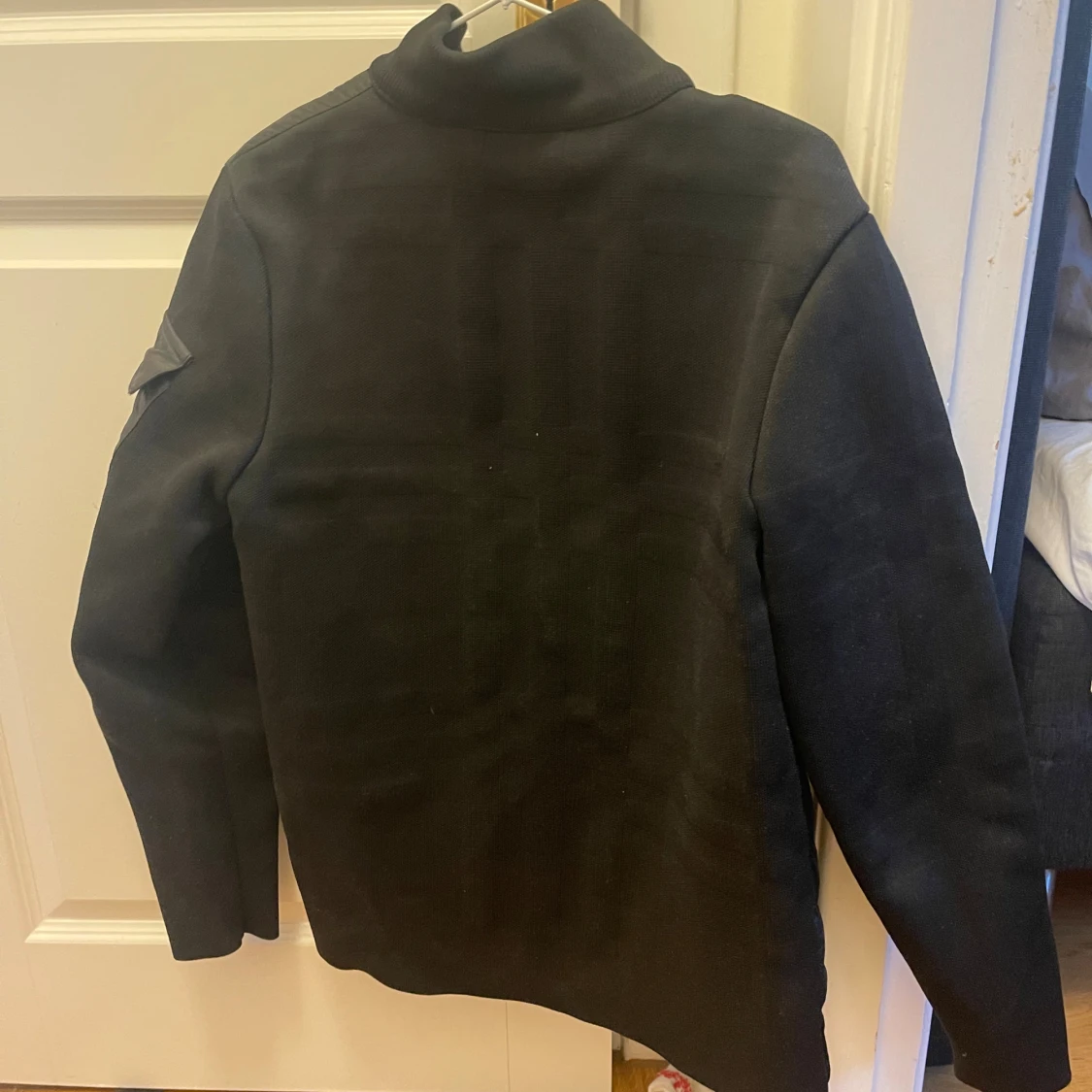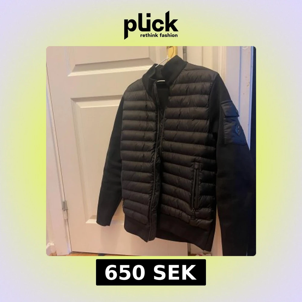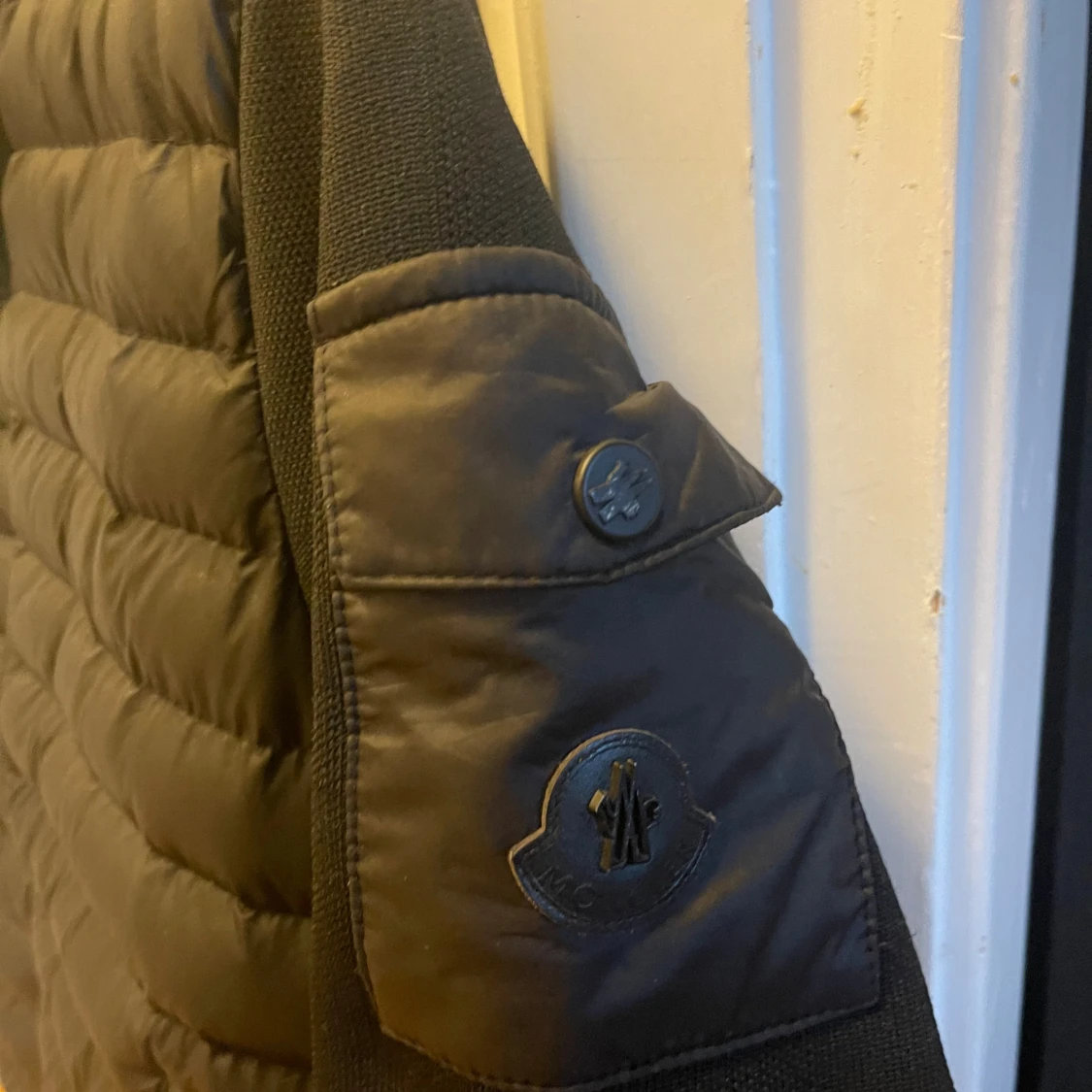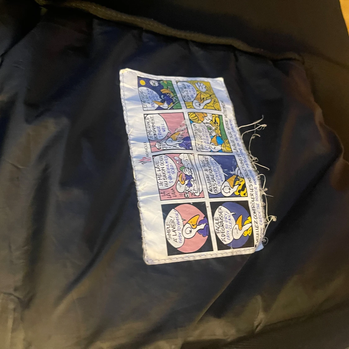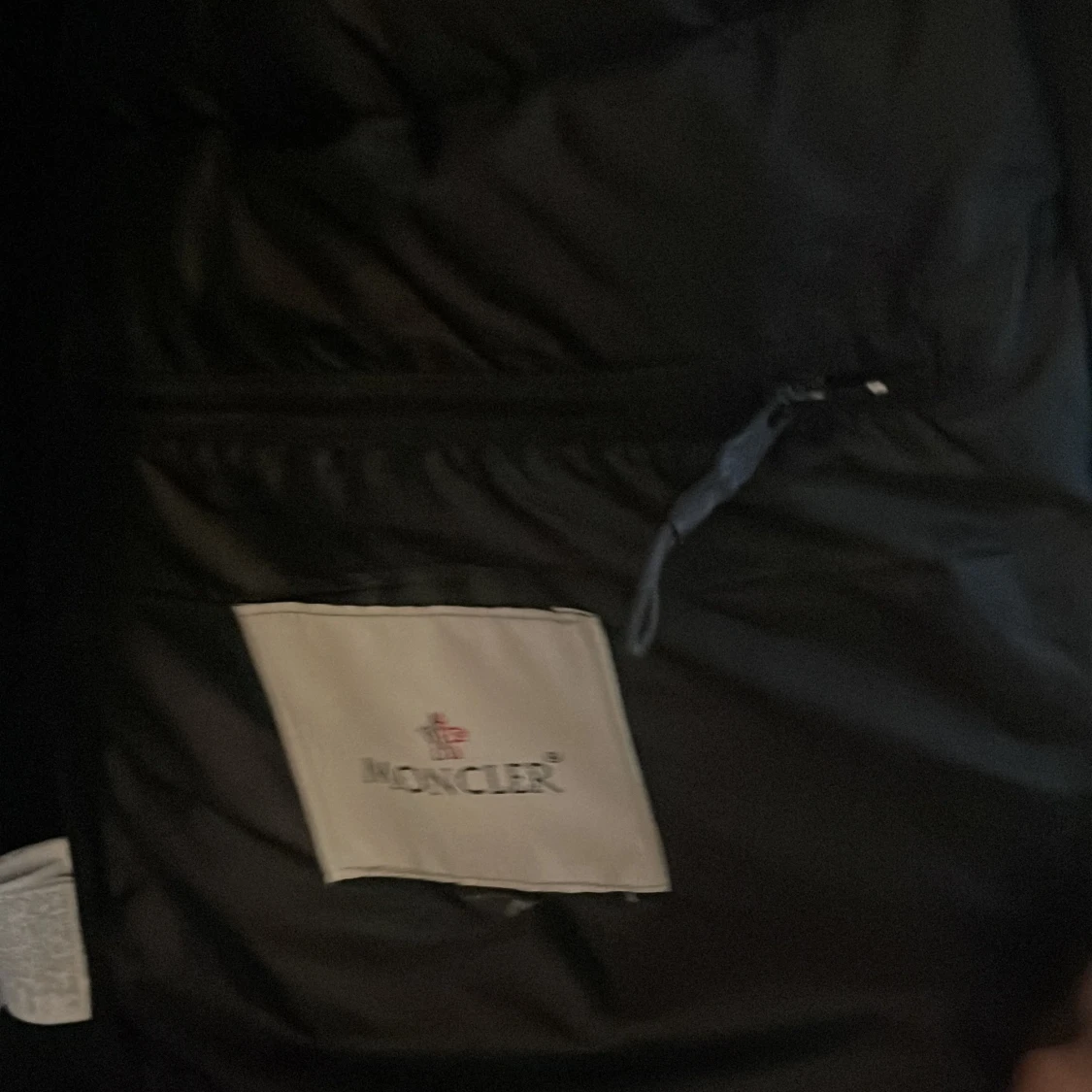 Har inte använt den så mycket. Säljer en svart pufferjacka från Moncler med quiltad framsida och släta ärmar. Jackan har Moncler-logga på ärmen, dragkedjor på fickorna och en cool serietidningsetikett på insidan. Perfekt för dig som vill ha en stilren jacka med exklusiva detaljer.