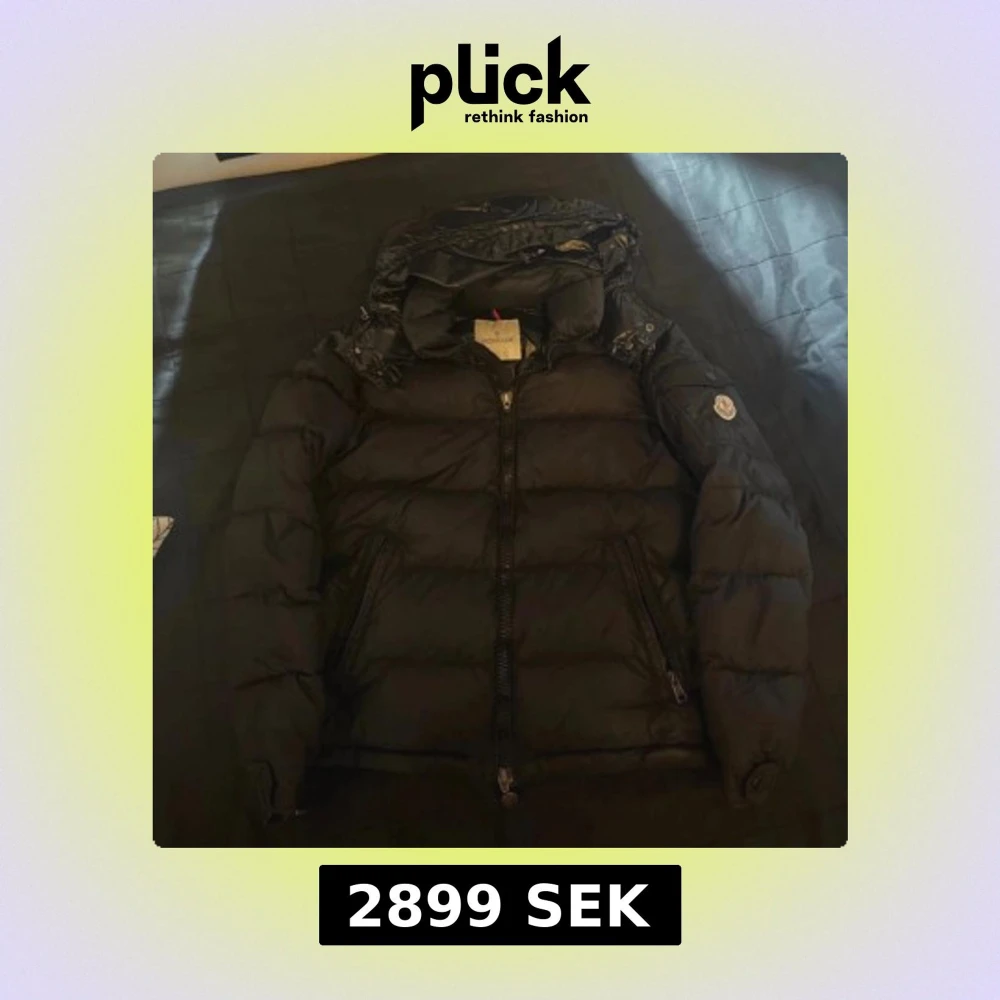 Säljer en svart dunjacka från Moncler med glansig finish och huva. Jackan har dragkedja framtill, två sidofickor med dragkedja och klassisk Moncler-logga på ärmen. Perfekt för kalla dagar och riktigt snygg streetstil. Kvitto finns och om fler bilder önskas är det bara att höra av sig.